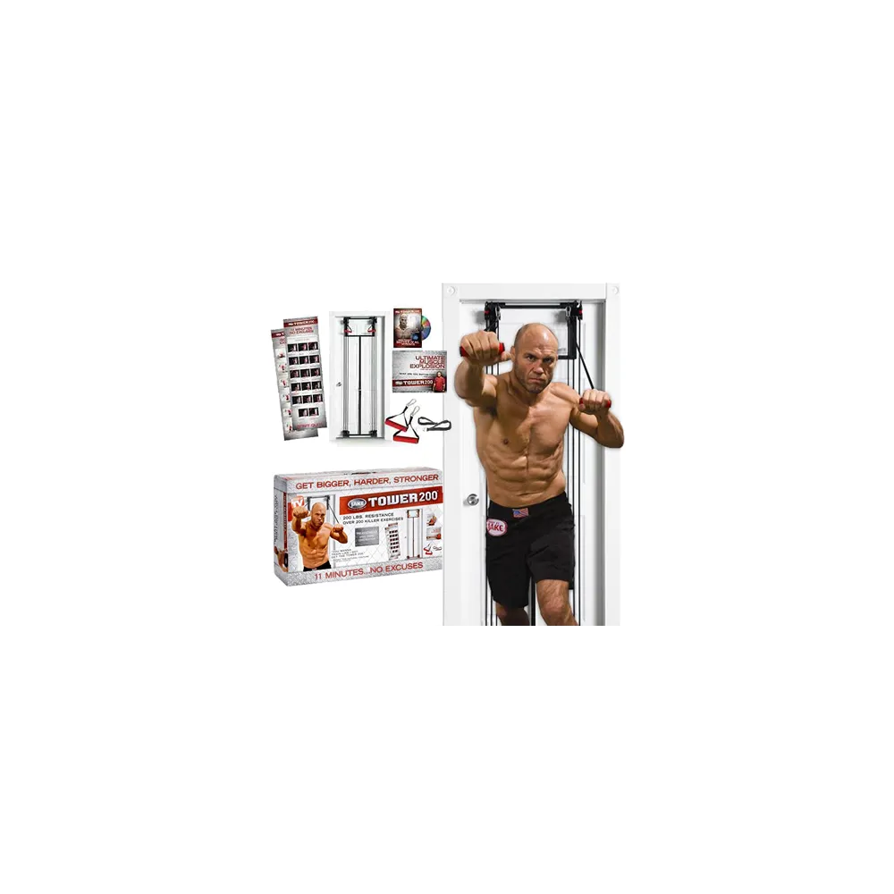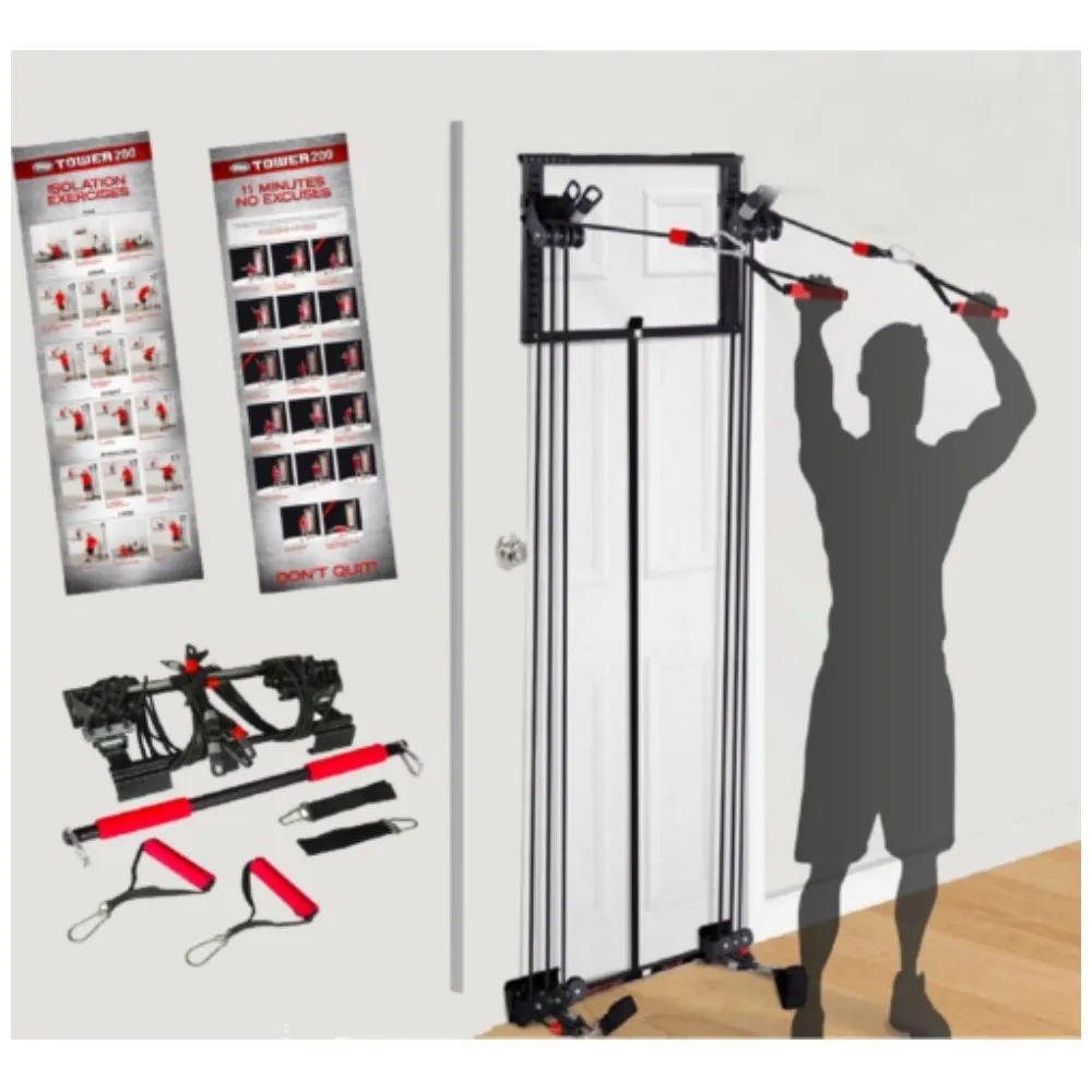 Aparat fitness Tower 200 Tower 200 va lucra prin intermediul sistemului de scripete toate partile corpului la intensitatea dorita, datorita posibilitatii de reglare a rezistentei.Este un aparat de fitness complet in toate aspectele.Tower 200 este usor de instalat. Poate fi instalat atat pe un cadru de usa cat si pe un perete. Aparatul de exercitii cu corzi Tower 200 se prinde pe usa si poate fi utilizat ca un aparat multifunctional de fitness.Acest aparat se poate monta usor pe orice tip de usa, astfel va puteti crea o mini sala de sport aproape oriunde.