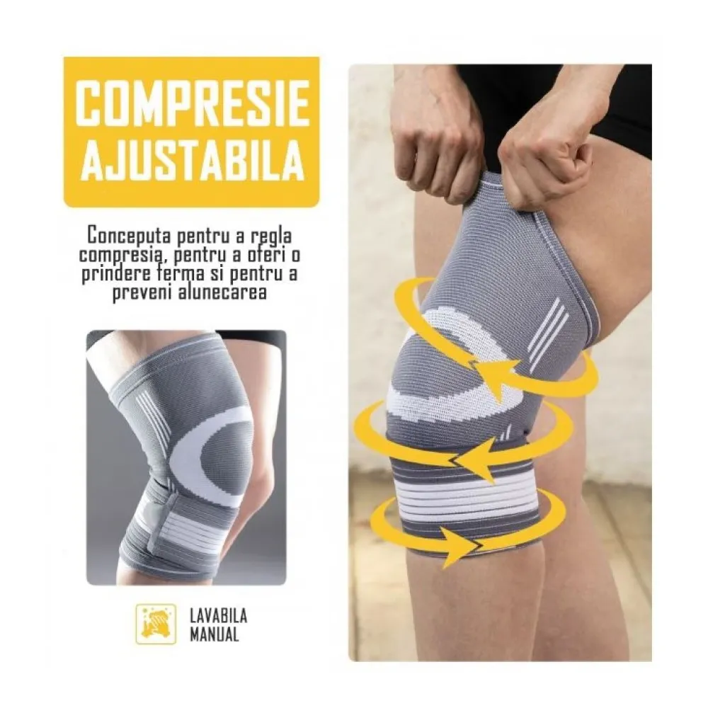 Suport si mobilitate completa: genunchiera ofera suport si stabilitate pentru genunchi, fara a fi la fel de restrictiva ca genunchierele din materiale mai dure, permitand mobilitatea completa a genunchiului.