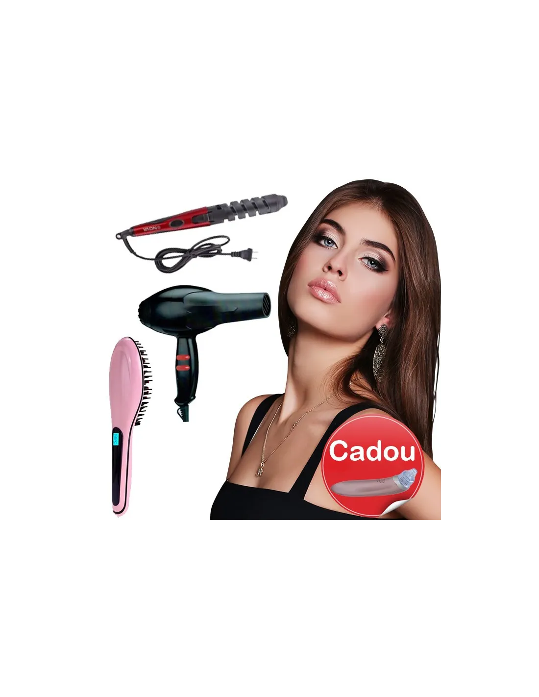 Ondulator profesional pentru bucle perfecte, perie electica de intins parul, feon si aparat pentru caratarea tenului,
