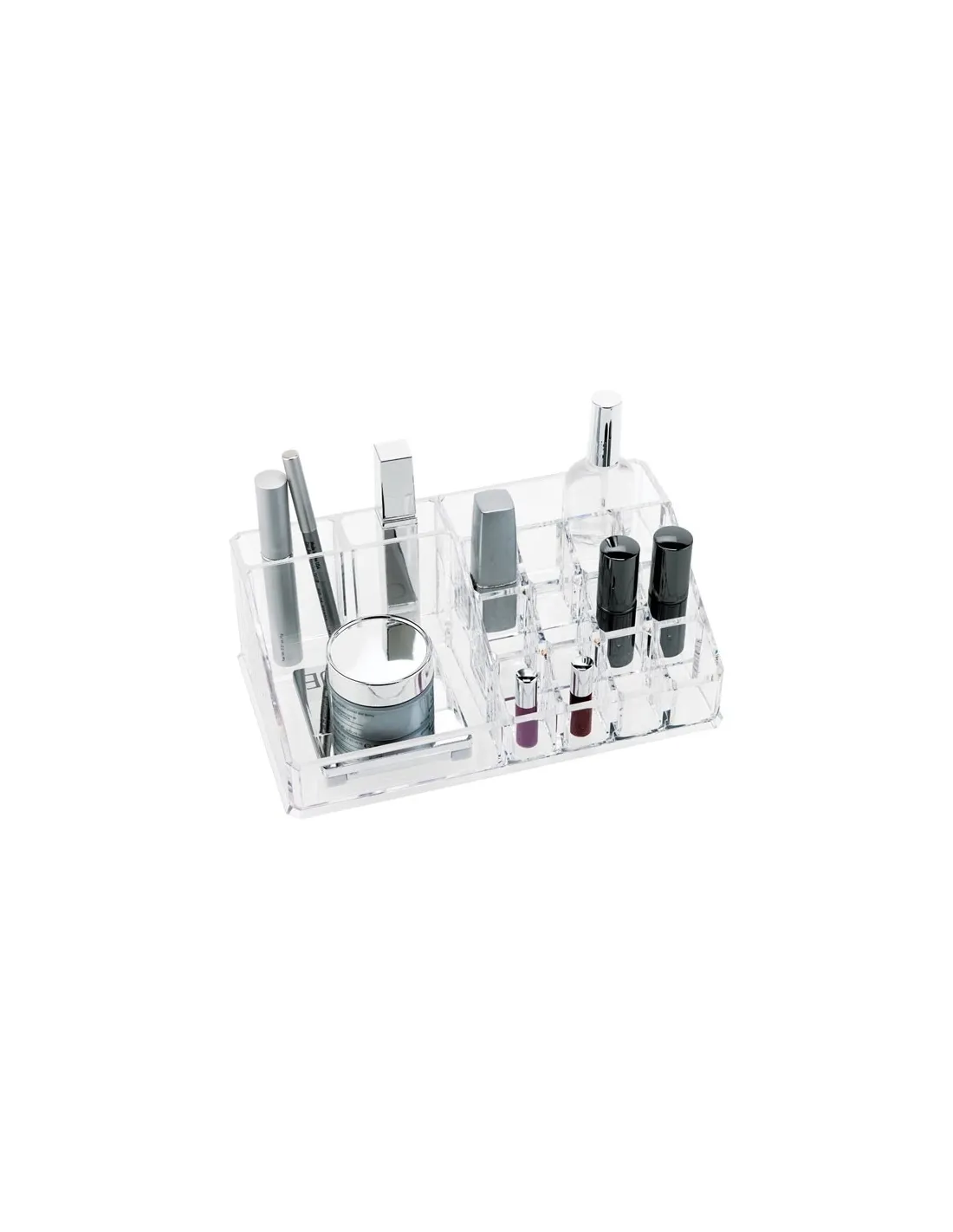 Mini suportul dispune de 16 compartimente distincte de dimensiuni diferite ce vor pastra in mod igienic crieoanele de de ochi, lacurile de unghii, fardurile, rujuri, rimeluri, etc, la îndemân?, Fabricat din acril de foarte buna calitate,