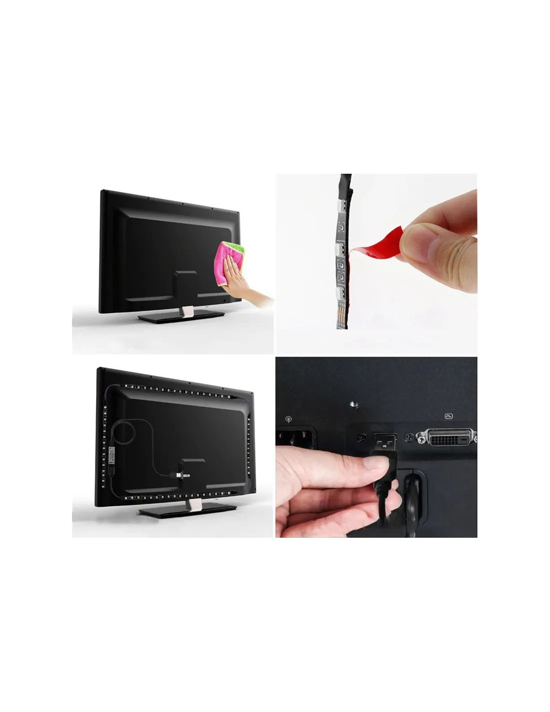Lumina creata de aceasta banda in spatele televizorului va face ca ochii sa nu mai fie focalizati doar pe contrastul foarte puternic al ecranului si astfel ochii vor fi mai relaxati si mai odihniti.