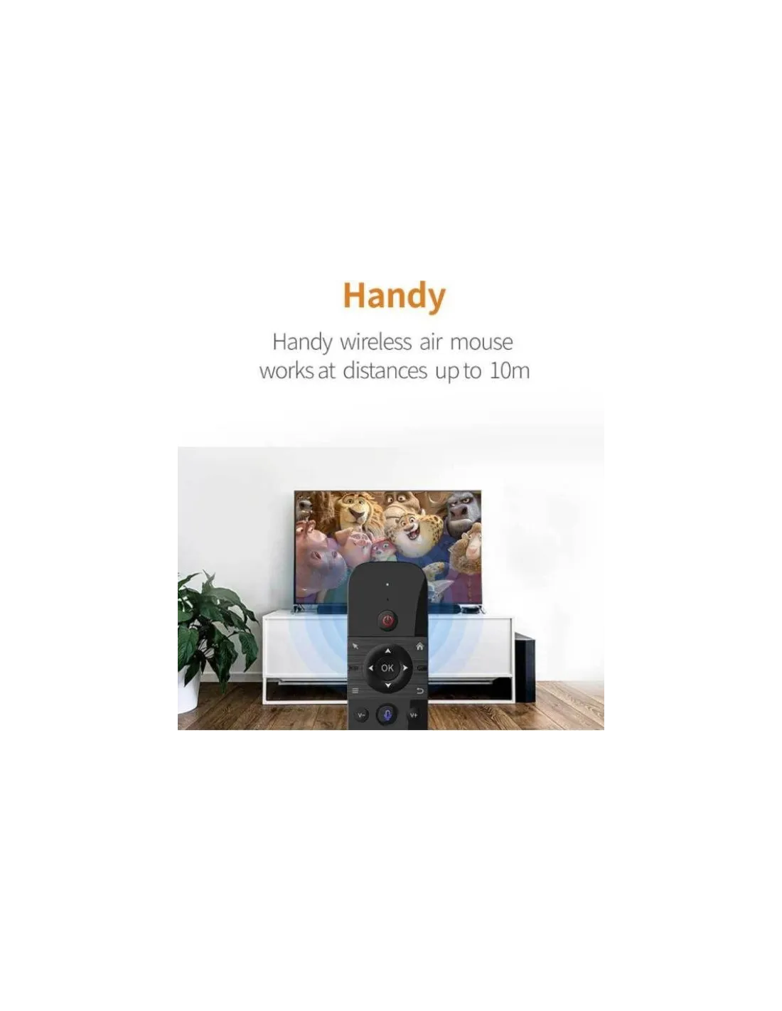 Telecomanda fara fir, reincarcabila, cu mouse multifunctional, tastatura, control multimedia Android si suport pentru jocuri. Este dependenta de miscarile pe care le faceti si cursorul le respecta cu precizie. Permisiuni: cititi si raspundeti la mesajele de pe facebook, tastati pe tastatura, folositi dispozitive video electronice. Se conecteaza la toate dispozitivele dumneavoastra prin tehnologia wireless de 2,4 GHz.Potrivit pentru PC, Pad, Android TV box, Google TV box, proiectoare.