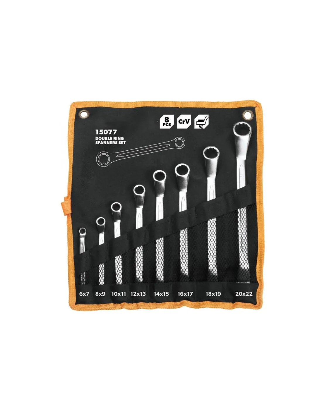 Setul contine 8 chei inelare cu 2 capete fabricate din otel crom vanadium, pentru o rezistenta si durabilitate superioara.