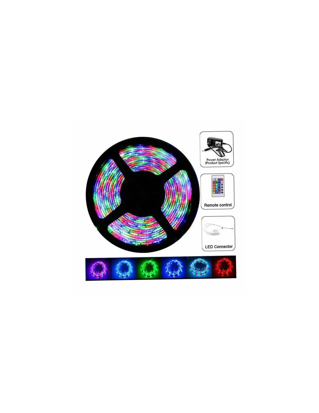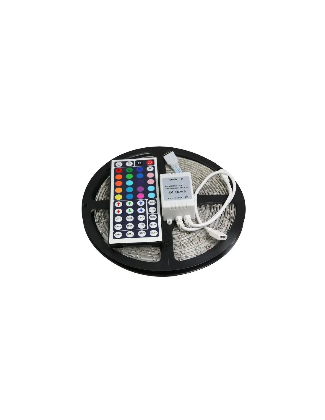 Banda LED 12 V cu controler si telecomanda wireless, utila pentru efectele sale speciale in iluminarea spatiilor interioare, dar si acvarii, pentru cei pasionati de tuning auto sau la realizarea de firme si casete luminoase. Cele 300 de led-uri multicolore asigura o lumina puternica, cu consum energetic redus si durata de viata mare (50.000 de ore).