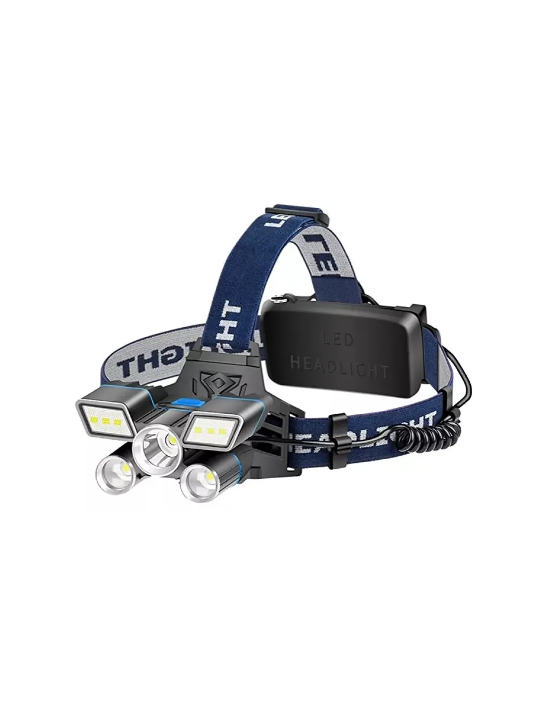 Lanterna de cap cu 5 LED 3 COB + 2 stroboscoape rosu-albastru