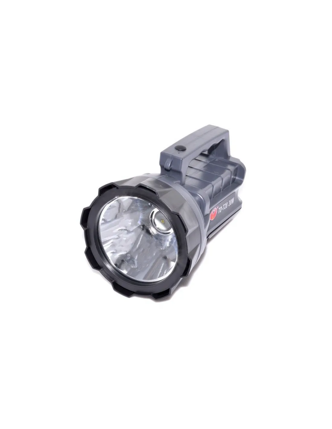 Lanterna de mana cu led SMD de putere 30W . Aceasta lanterna cu corpul din plastic ABS , este construita cu maner comod pentru a putea si utilizata in multiple actiuni si nevoi. Pe maner are butonul prin apasare pentru controlul lumini , avand 2 trepte de lumina . In partea din spate priza de incarcare a acumulatorilor incorporati cu o capacitate de 4000mAh .Datorita puteri acumulatorilor poate fi utilizata pana la 5 ore pe lumina puternica si 9 ore pe lumina mica. Lanterna este foarte usor de utilizat. In partea de jos a Lanternei avem un suport care fixeaza lanterna in pozitie verticala si astfel putem utiliza acesta lanterna ca lampa de lucru . Aceasta lanterna se poate folosi la : vanatoare , camping , pescuit , actiuni de cautare , actiuni de paza si protectie , si situati de lucru. Lanterna vine la pachet cu incarcator de retea si coarda de prindere.