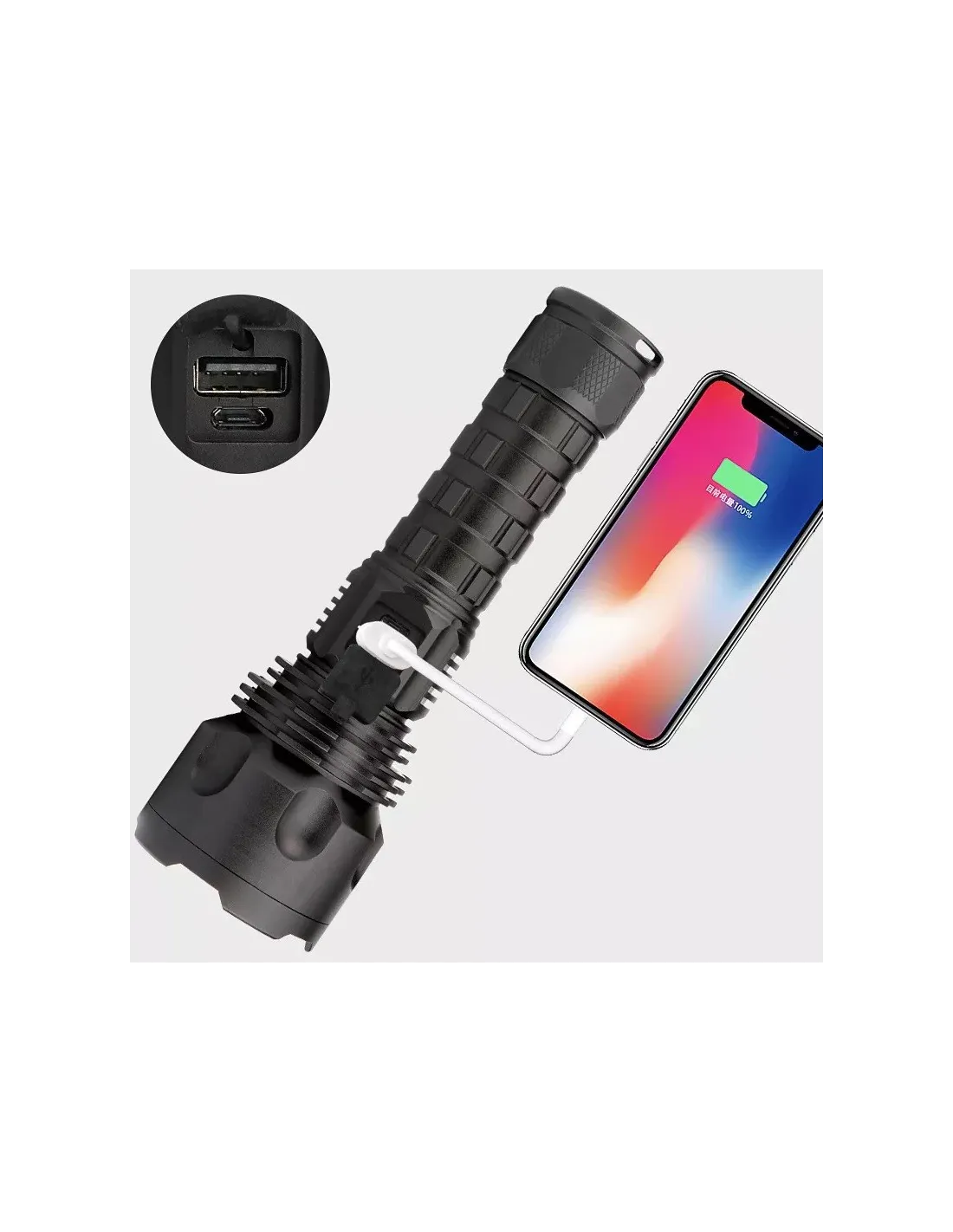 Dispune de USB pe corpul lanternei, chiar langa mufa de incarcare, astfel ca poate fi utilizata si ca baterie externa / acumulator extern – Power Bank.