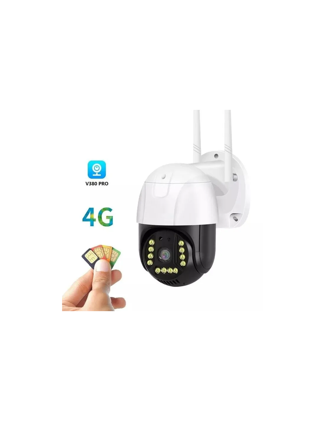 Cameră DASGUT 4G, 360° cu SIM, 3 MP, PTZ, Aplicație V380 Pro, Stocare Micro SD 128 GB, Interior-Exterior, IP66 + Card cadou 32GB