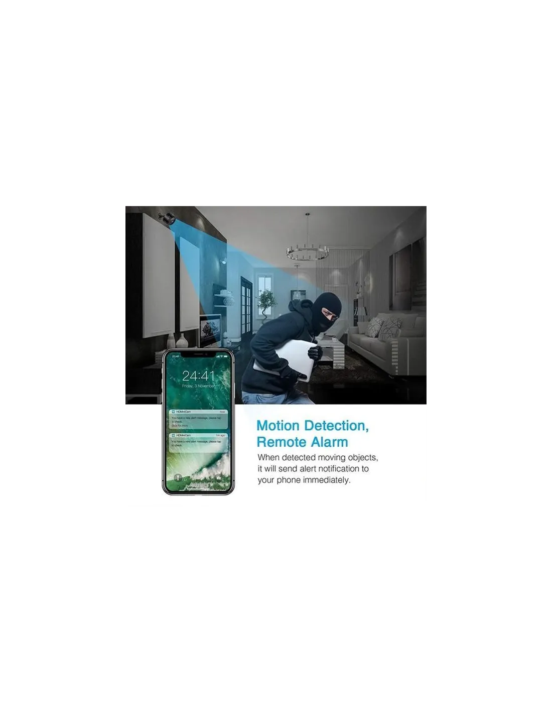 - Alarmă de mișcare: Notificări instantanee prin aplicație pentru o securitate activă.