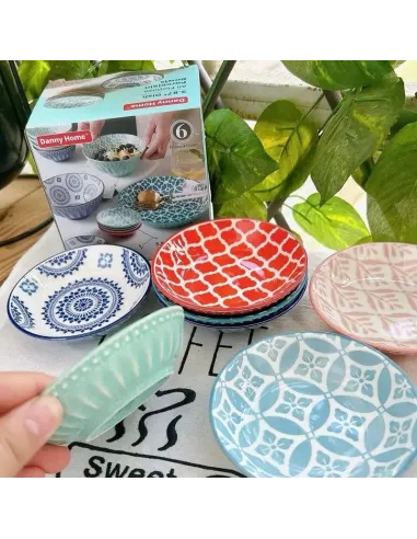 Set 6 Farfurii mici portelan boemian design, 9cm , R15811
