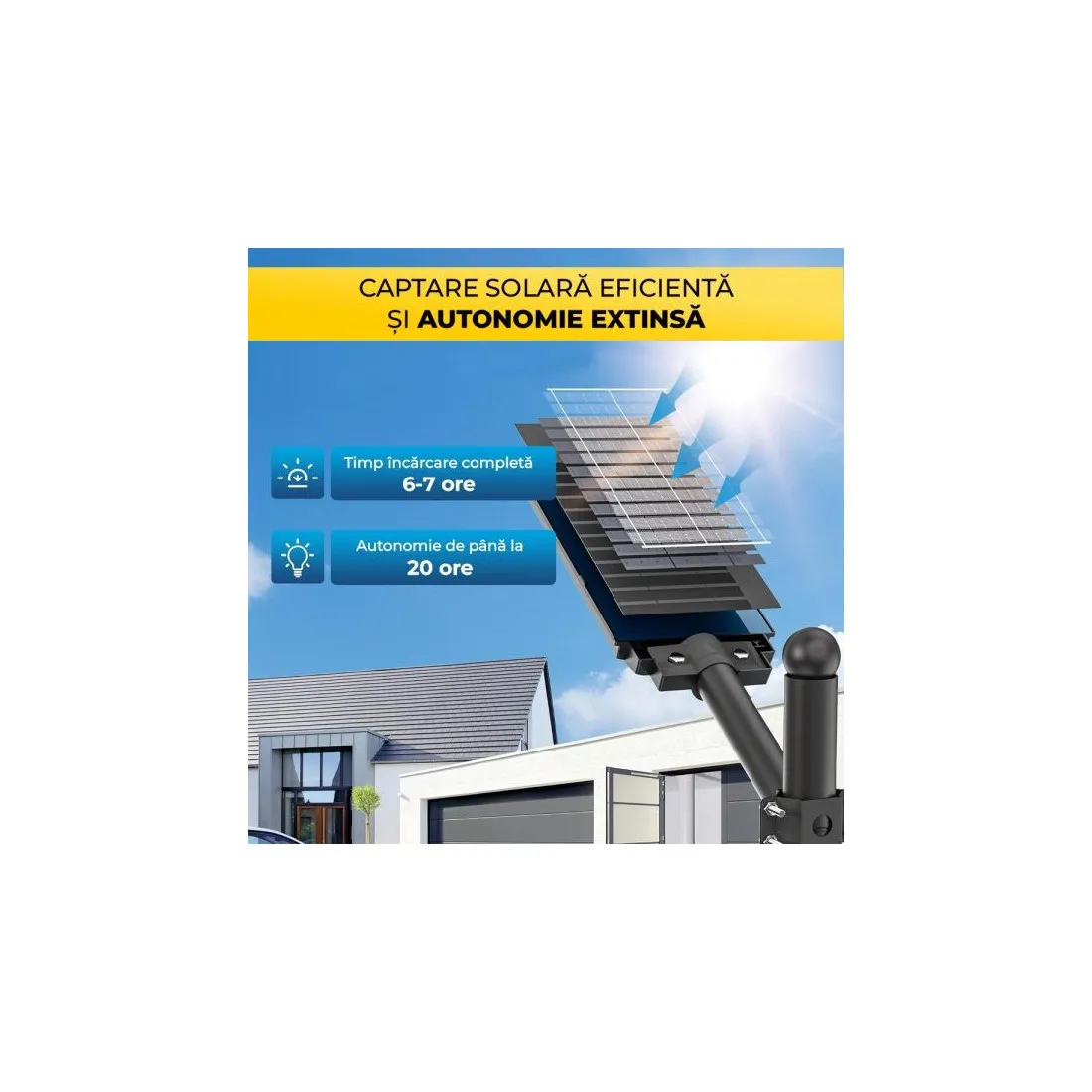 Lampa solara stradala dubla Jortan 2000W, telecomanda, suport metalic