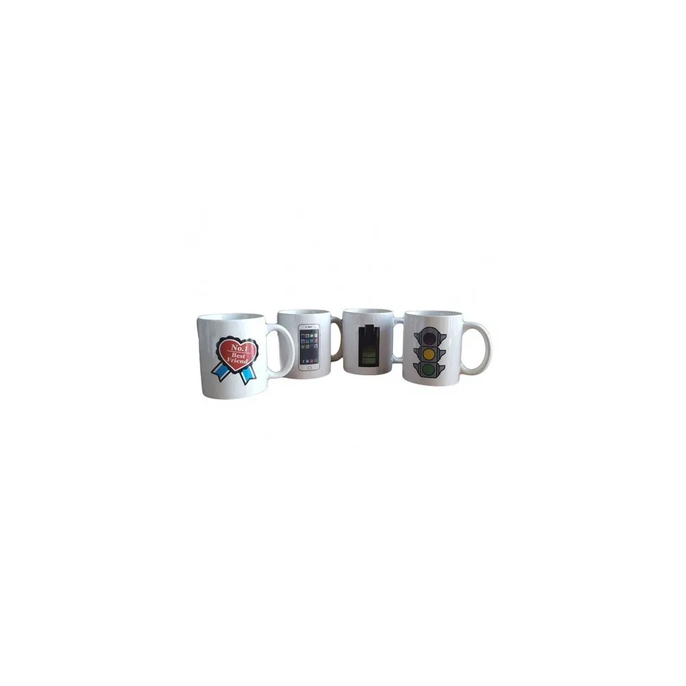 Cana magica termosensibila care isi schimba culoarea Cana magica termosensibila care isi schimba culoarea este un cadou de mare efect si poate fi folosita la birou in bucatarie sau oriunde, prezentandu-se cu un logo subtil care isi va schimba designul si-ti va designul odata cu lichidul fierbinte, Tot ce trebuie sa faceti este sa turnati cafea sau ceai fierbinte in Cana termosensibila astfel lichidul fierbinte stimuleaza nivelul! Datorita caldurii, aceasta cana termosensibila indica cantitatea de lichid din interior si daca acesta este fierbinte! Cana termosensibila este disponibila in mai multe culori, aceasta are inaltimea de 96mm, diametrul de 82mm, 300ml, Cand este rece pare o cana obisnuita dar atunci cand se toarna un lichid fierbinte in ea se deschide la culoare si apare imaginea imprimata de aceea aceasta cana este un cadou de mare efect, Specificatii Cana magica termosensibila care isi schimba culoarea: - inaltimea de 96mm- diametrul de 82mm- capacitate 300ml Nu se poate folosi in cuptorul cu microunde, Se spala doar manual,