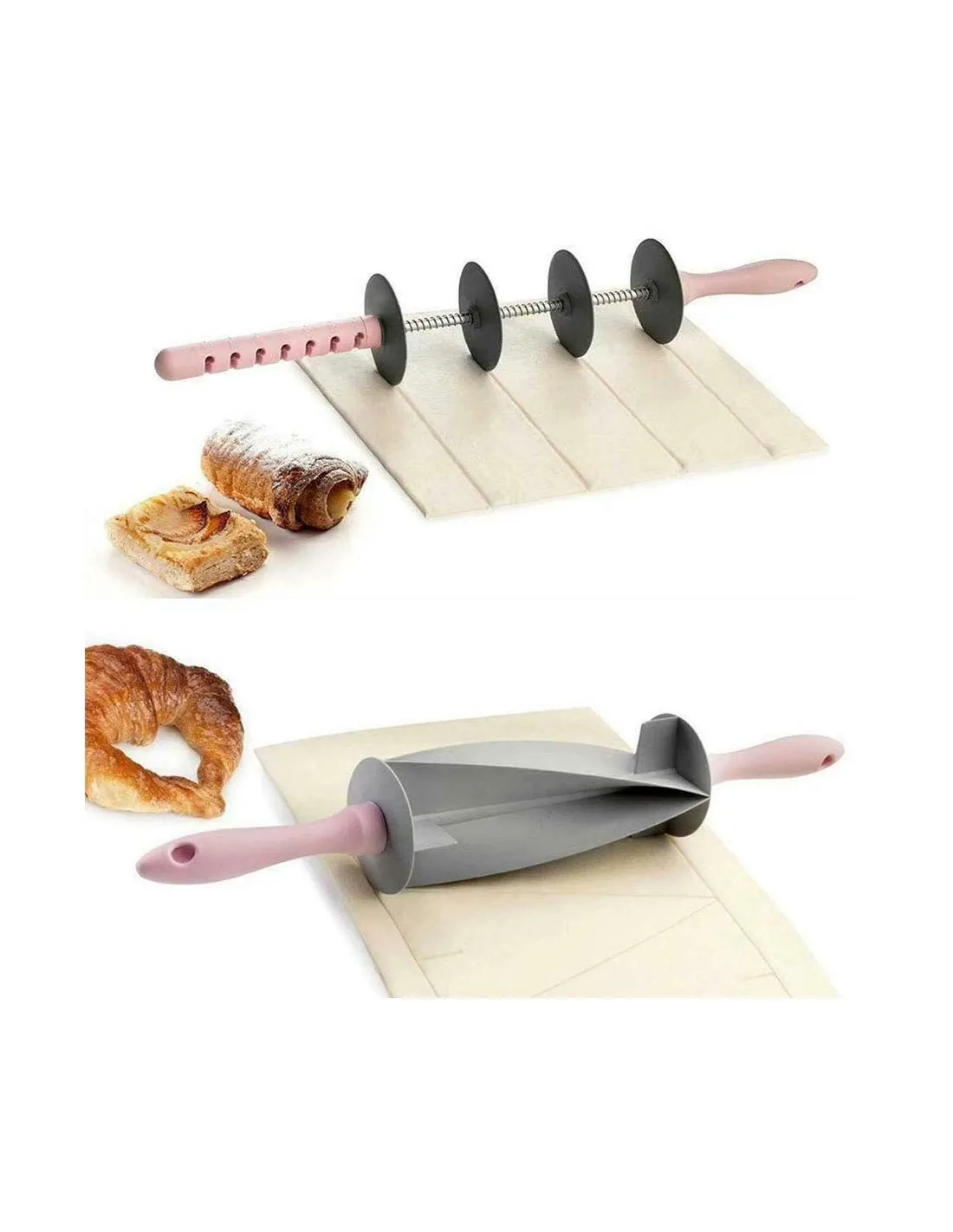 Sucitorul cu forma speciala va ajuta sa pregatiti croasante delicioase. Pur si simplu rulati sucitorul pe aluat, iar apoi intorarceti-l in sens opus. Acesta va taia aluatul in forma speciala pentru croissante. Daca aveti o reteta de croissante, atunci aveti nevoie de facalet sau sucitor de aluat pentru croissante. Facaletul va taia aluatul in triunghiuri cu 2 laturi lungi de 18 cm si baza de 10 cm. Asezati sucitorul pe aluat si rulati-l incet pentru a obtine triunghiuri din aluat.