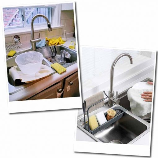 Nu va mai trebui să uscați bureții și cârpele pe chiuvetă sau chiar să le lăsați în ea, unde se udă din nou de fiecare dată când deschideți robinetul. În plus, toți bureții și cârpele așezate într-un singur loc vor arăta mult mai organizate.