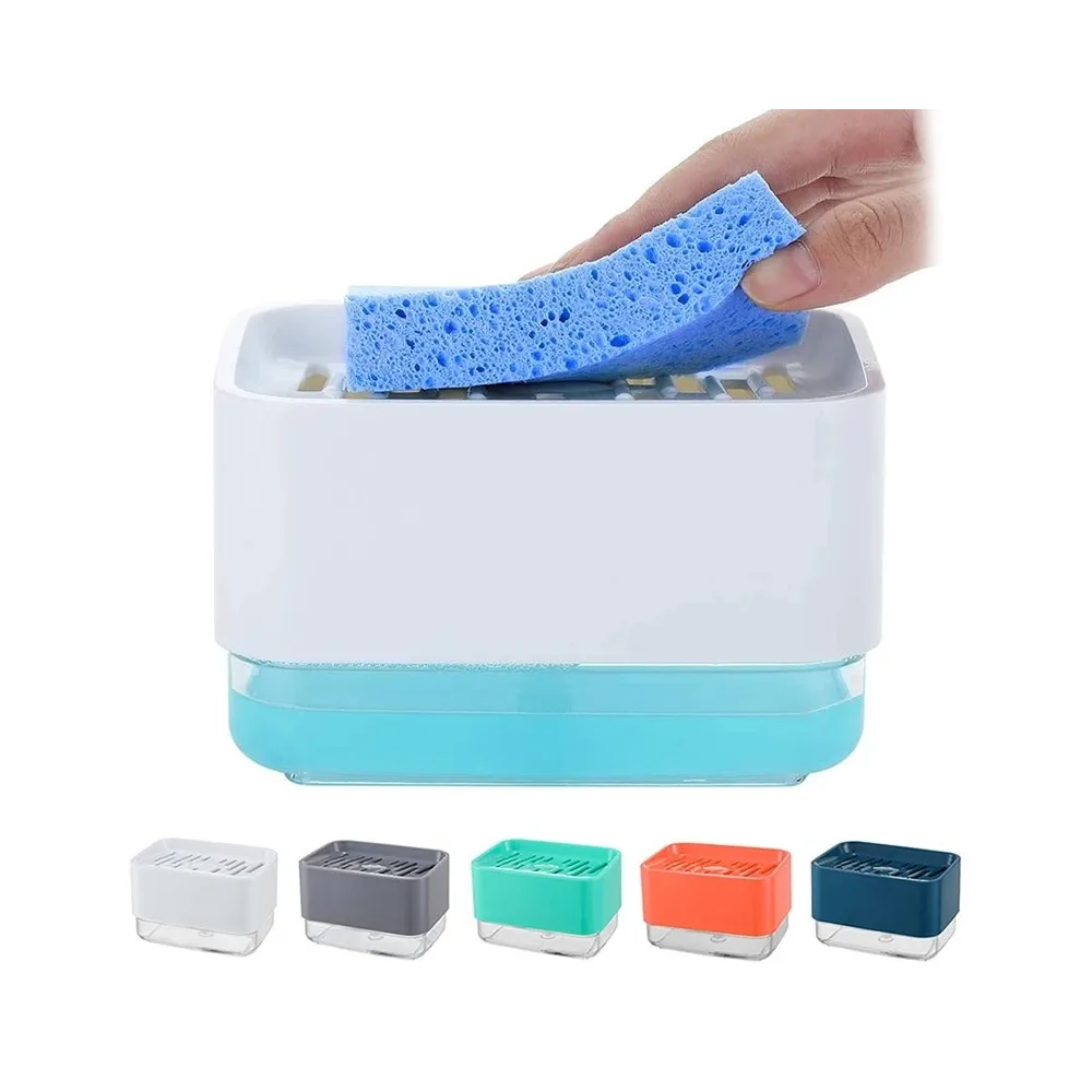 Acest dispenser 2 in 1 dispune de un recipient de 380 ml pentru detergent lichid, o pompa, un suport de burete de vase . Este realizat din ABS de calitate, durabil, nu rugineste si este foarte usor de folosit.