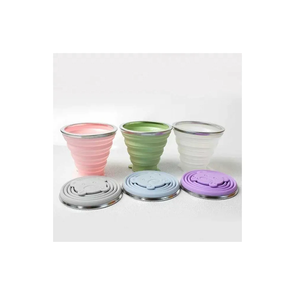 Cana de voiaj pliabila din silicon alimentar, cu rama din otel inoxidabil si capac din plastic. Ușor de curățat, fără miros deosebit, fără vopsire, durabil, flexibil și reutilizabil