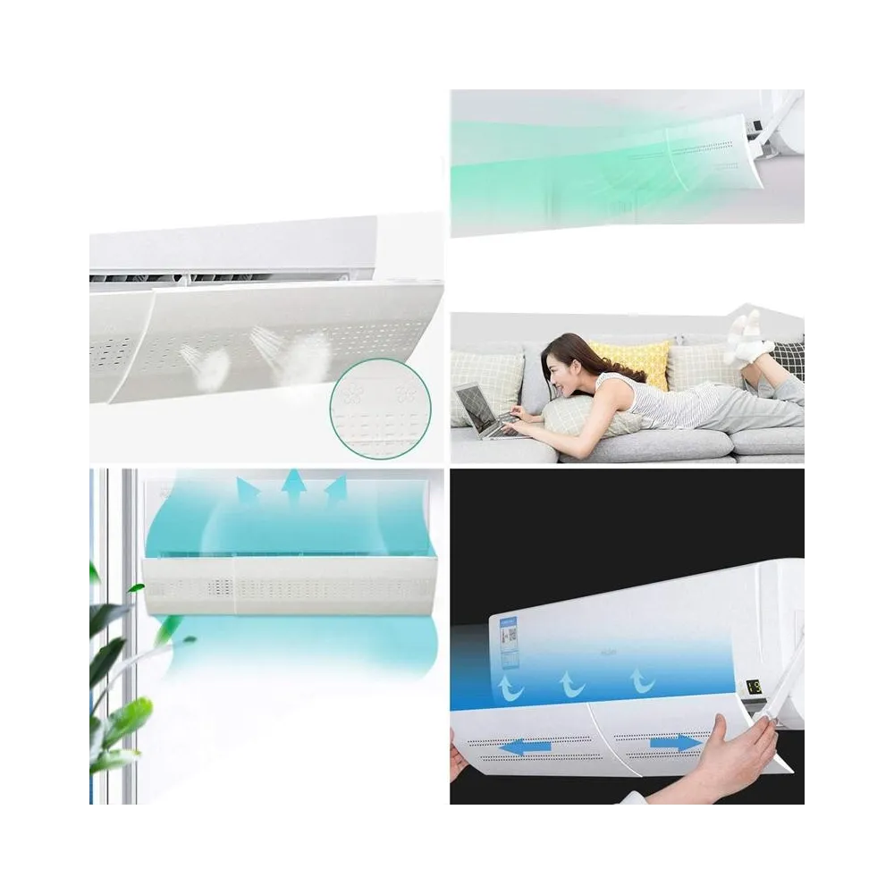 Deflector aer conditionat, ajustabil 52-92 cm, design ergonomic. Este usor de asamblat, are un design ergonomic pentru reglarea aerului (in sus si in jos) si este potrivit pentru acasa, birou, hotel, etc. Pachetul contine accesoriile de montaj. Lungimea sa este ajustata de la 52 la 92 cm pentru a se adapta la unitatea interioara pe care o aveti, iar latimea sa este de 16 cm. Dimensiunile pachetului: 53 x 3. 5 x 16.5 cm. Culoare: Alb.