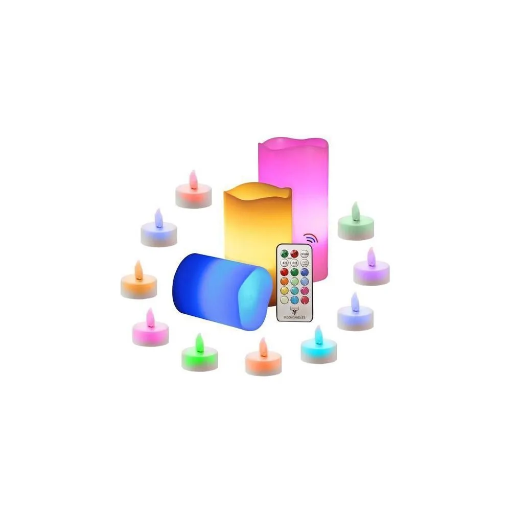 Aceste lumanari ambientale electrice au lumini cu diverse culori ce pot fi selectate din telecomanda. Lumanarile cu LED dispun de un temporizator automat cu 4 si 8 setari, iar durata de viata a unui LED este de ~ 10000 de ore.