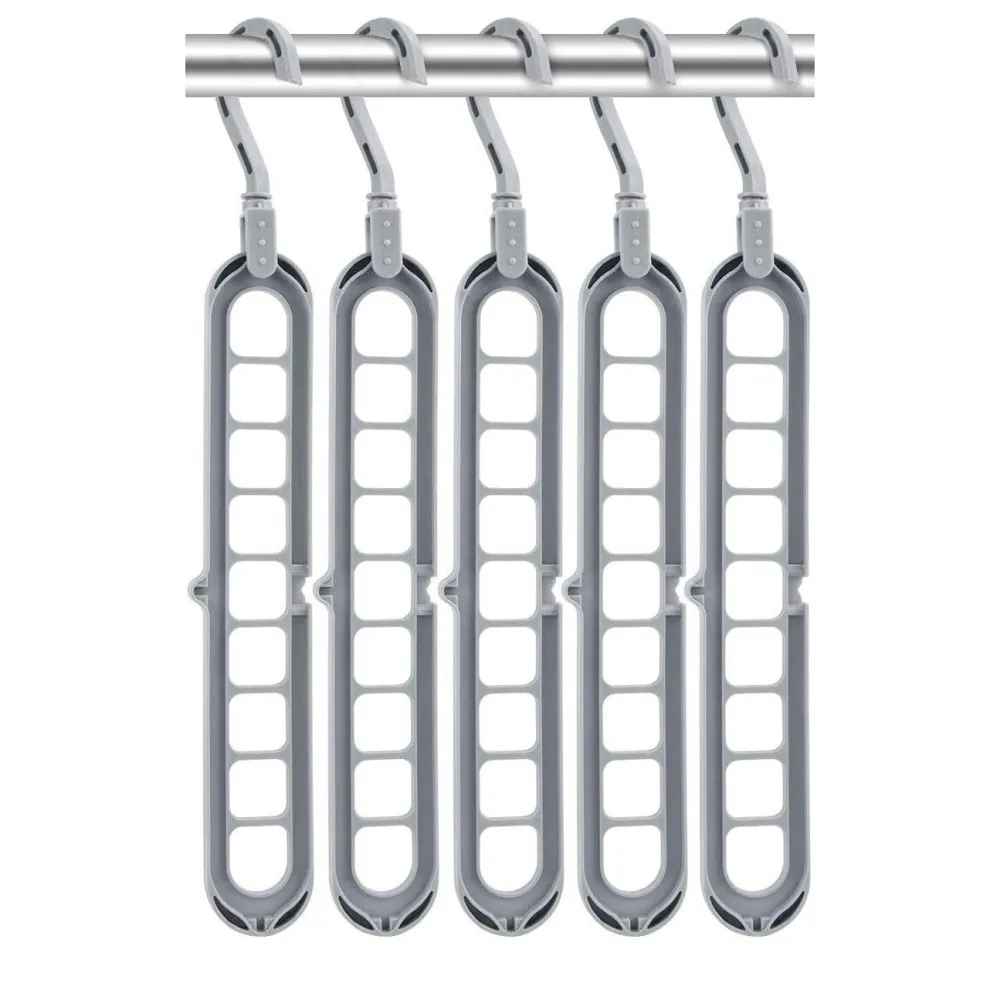 Set de aranjare a Umeraselor de haine Setul contine sisteme de agatare a umeraselor. Castigati de pana la trei ori mai mult spatiu prin depozitarea intercalata in sifonier a acestor inovatoare sisteme pentru umerase!Fiecare sistem dispune de locasuri pentru agatarea de umerase. In total, veti avea 30 de locasuri de agatat umerase! Bluzele, esarfele, fustele, pantalonii si camasile dumneavoastra nu au fost nicicand mai eficient aranjate in sifonier!