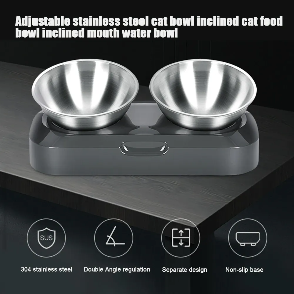 Set 2 boluri inox , pentru hrana animalelor, cu suport si inclinare reglabila
