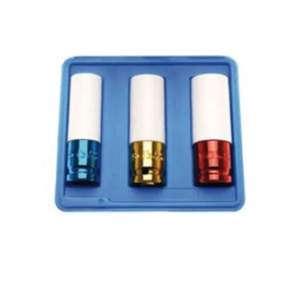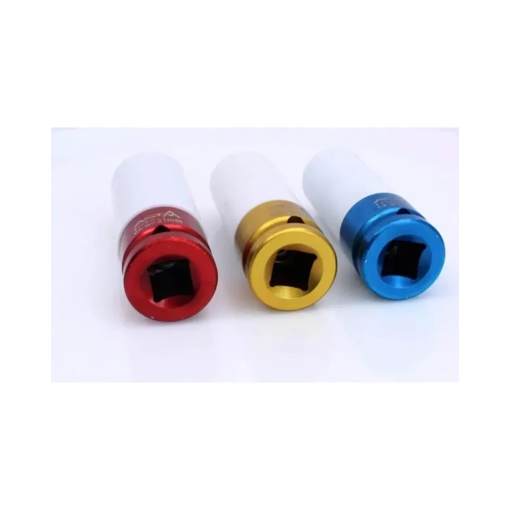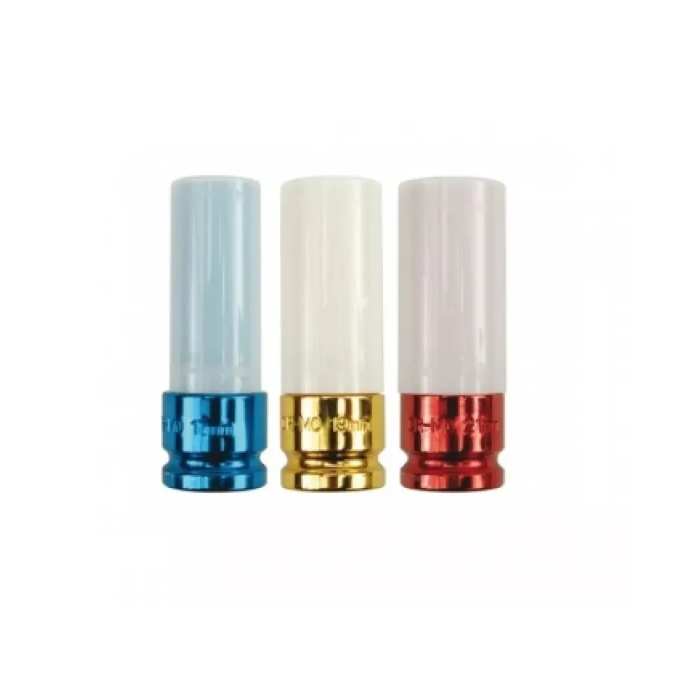 Chei de impact realizate din otel crom-molibden, echipate cu un manson de protectie din plastic moale, care protejeaza janta impotriva deteriorarii vopselei si finisaj cromat din trei culori, care ajuta la distingerea dimensiunilor. Peretii ultra subtiri garanteaza desfacerea suruburilor de jante din aliaj in locuri stramte.