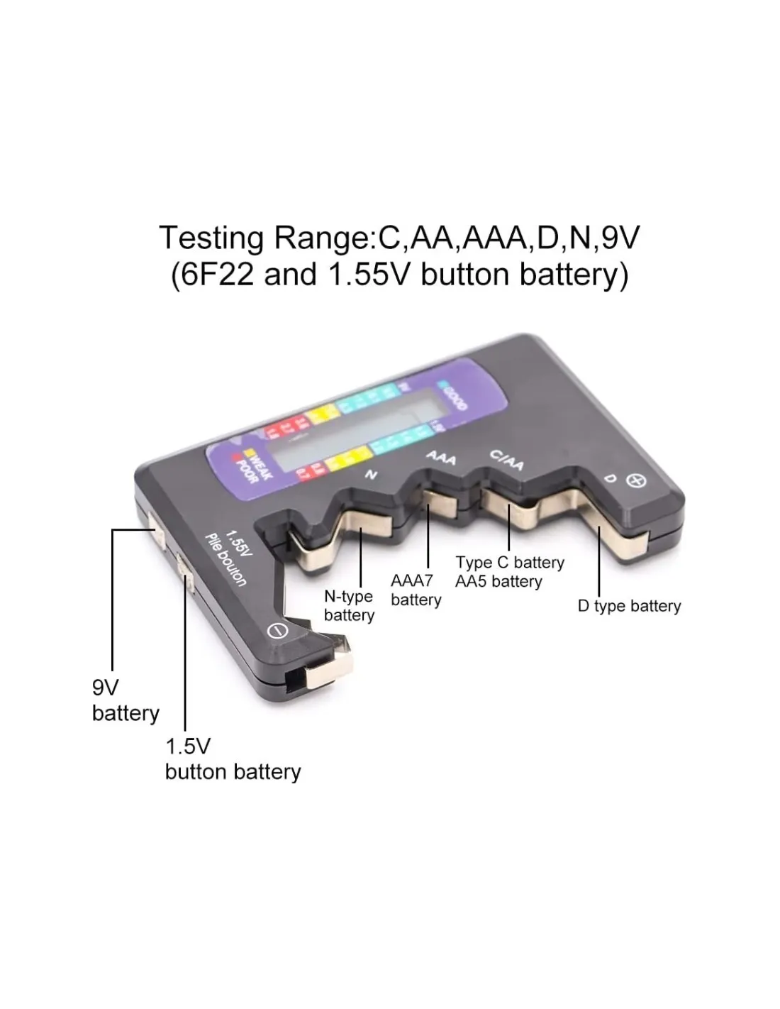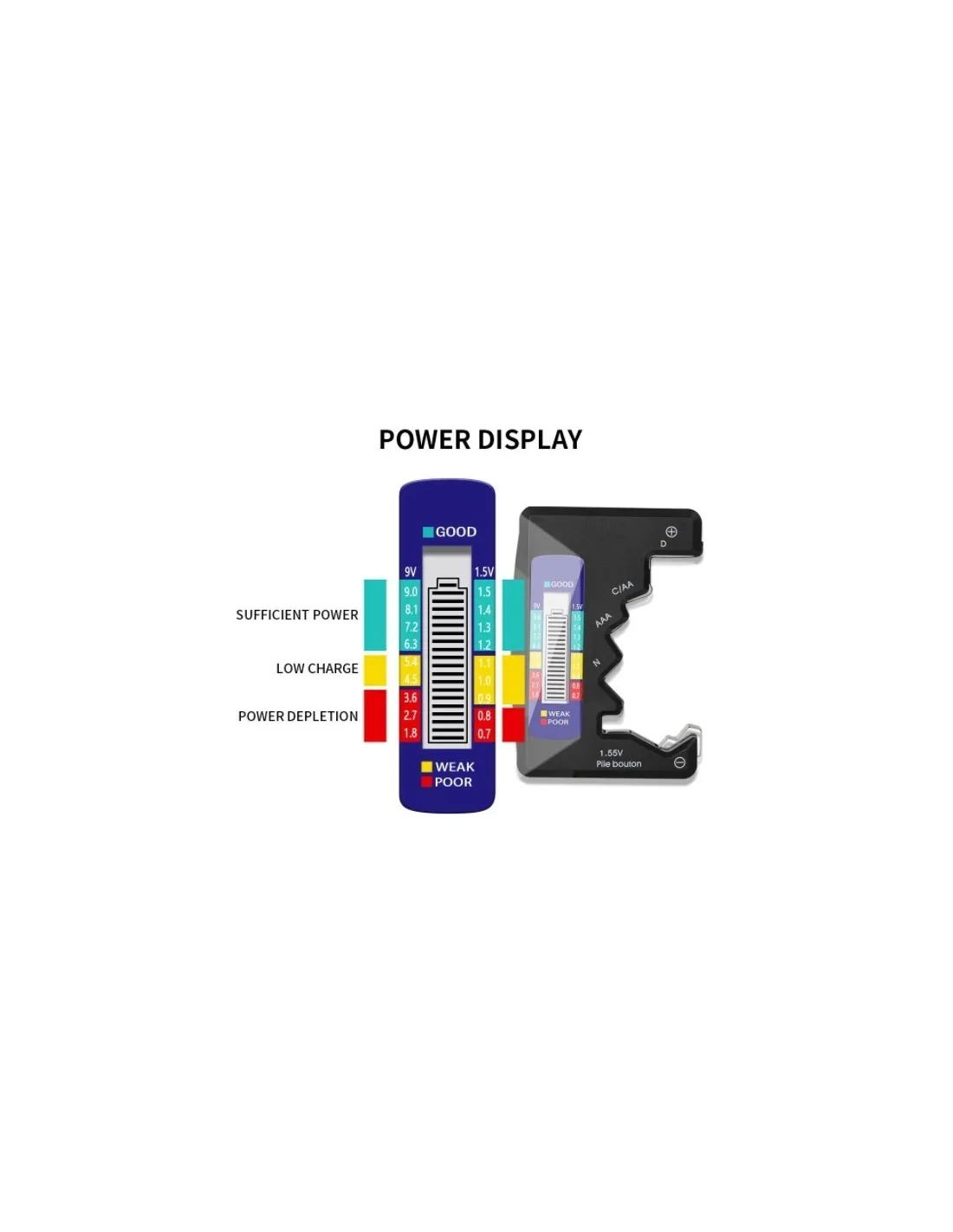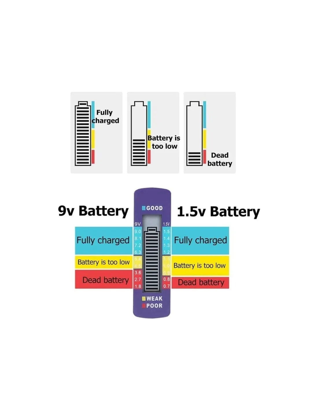 Capacitatile de testare multiple ale acestui tester durabil va permit sa verificati toate bateriile standard si bateriile reincarcabile de 1.5V si 9V, tip AA, AAA, C, D .