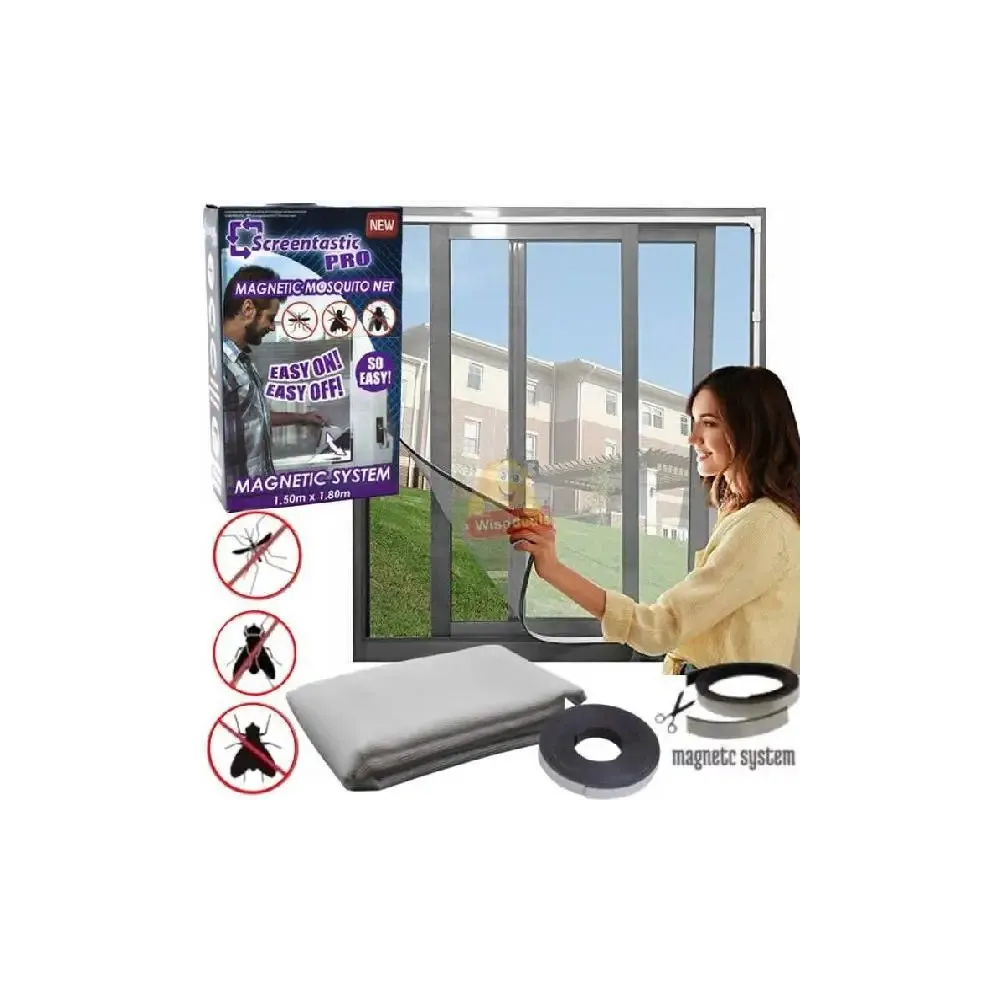 Plasa magnetică antiinsecte Screentastic Pro (150 x 180 cm) este soluția practică și eficientă pentru protecția locuinței împotriva țânțarilor, muștelor și altor insecte nedorite. Datorită sistemului de prindere cu bandă magnetică, montajul este rapid, fără găurire sau unelte speciale, fiind ideal pentru orice tip de fereastră.