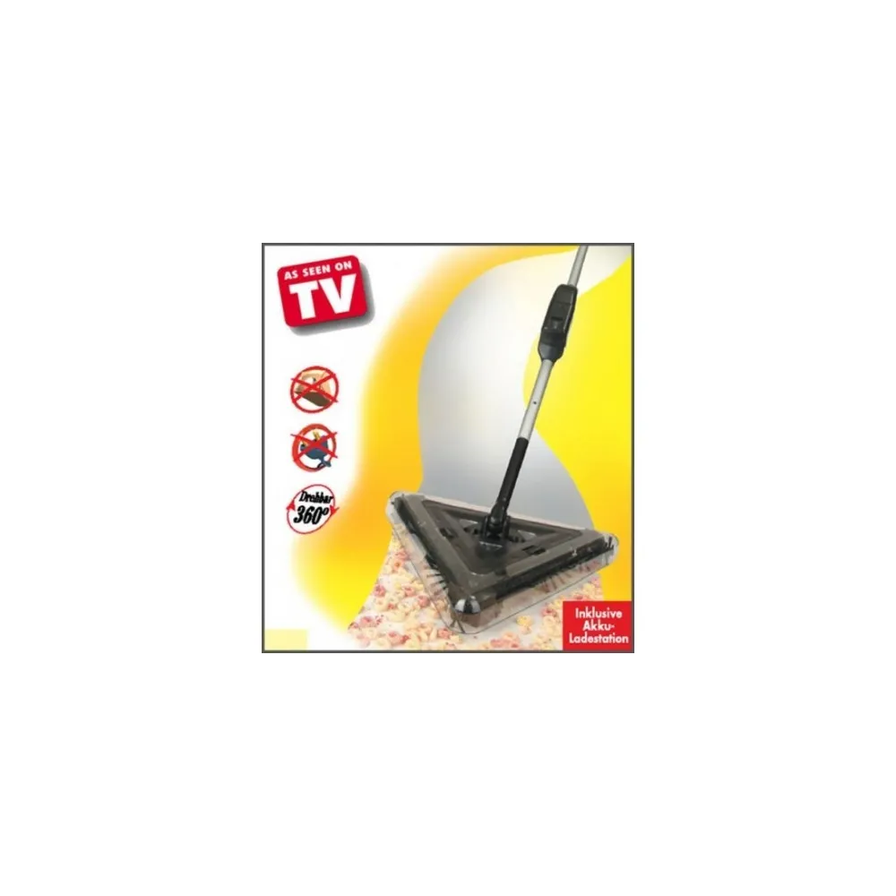 Matura electrica Twister Sweeperare o forma triunghiulara cu perii roatative pe toate cele trei laturi si este foarte usor de manevrat, ceea ce va ofera posibilitatea de a curata toate zonele greu accesibile, Cu un design inovator matura electricaTwister Sweepereste practica si usor de manevrat, Performantele acestui model sunt mult imbunatatite, puteti aspira orice tip de mizerie, fie ca sunt particule mari sau mici, Recipientul in care se aduna mizeria are un sistem special care va permite sa il goliti fara sa va murdariti, Cu ajutorul lui Twister Sweeper puteti curata fara efort chiar si covoarele groase, Pe langa toate, acestea produsul va ofera posibilitatea de a curata non stop timp de 45 de minute datorita acumulatorului reincarcabil, ceea ce inseamna ca veti putea curata podeaua fara sa tineti cont de cablurile electrice,