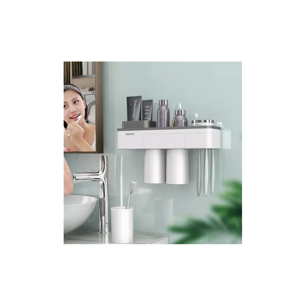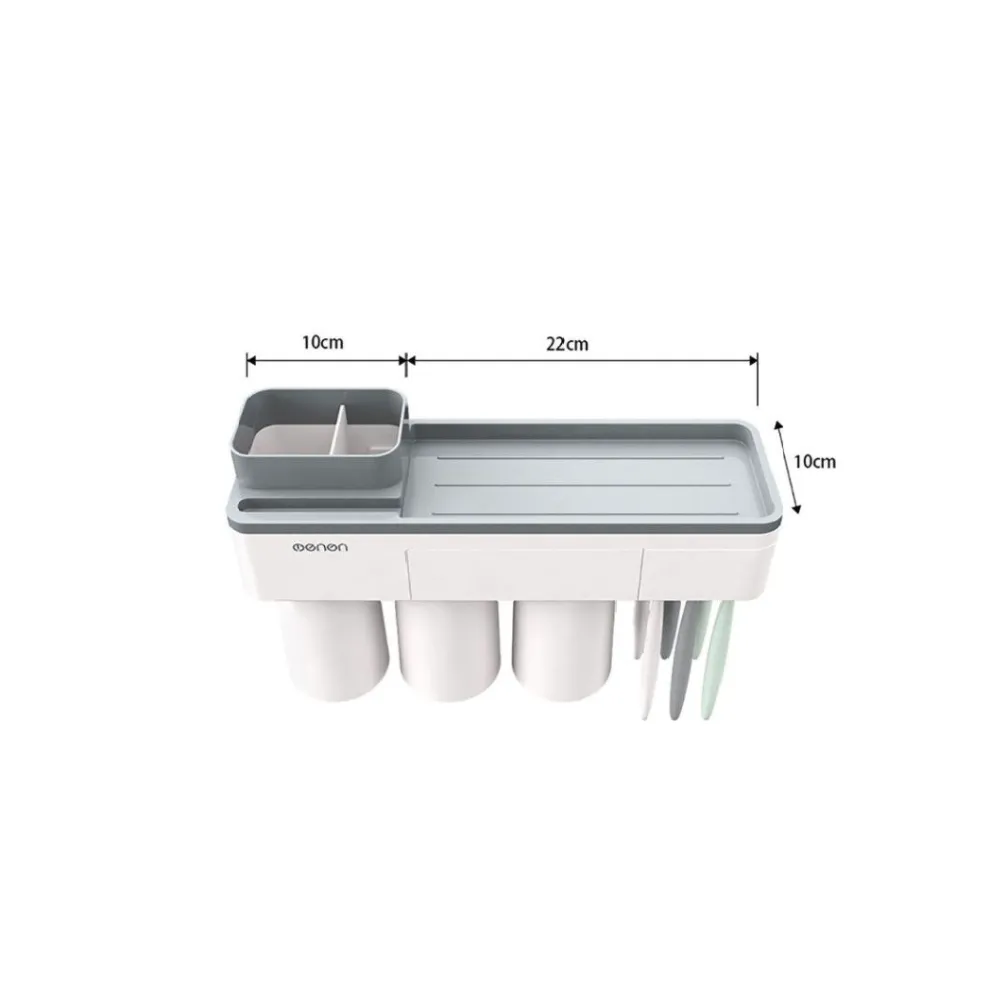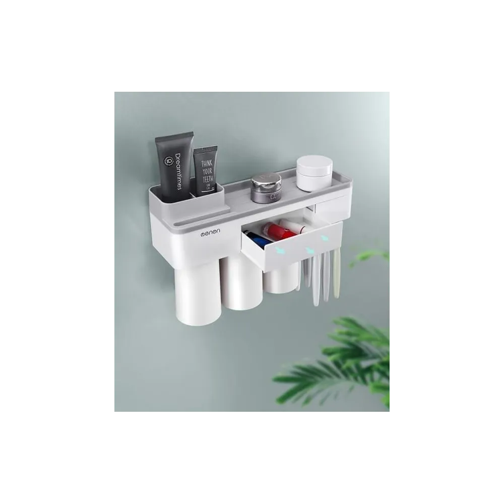 Suportul de periute poate gazdui 3 pahare (350 ml) pentru uz familial si 6 periute. Puteti depozita pasta de dinti, aparat de ras, curatator facial si produse cosmetice pe blatul mare. Mai mult, un sertar suplimentar este proiectat pentru a va depozita rujul sau alte accesorii mici, totodata contine si un suport pentru telefonul mobil.