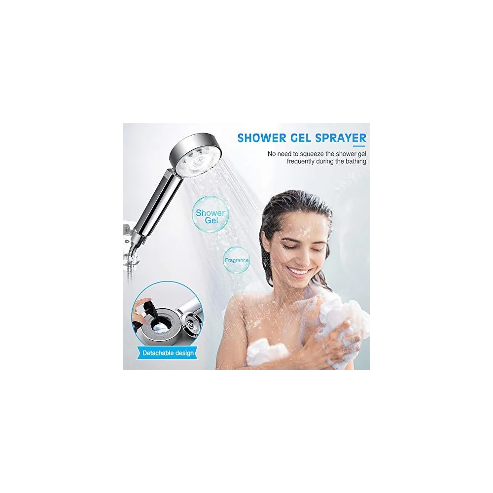 Un produs ingenios si revolutionar! Jet puternic de apa dar in acelasi timp economic. invovatia costa din compartimentul special din centrul capului de dus pe care il puteti umple cu sampon. La o apasare de buton pe o parte curge apa iar daca doriti sa utilizati samponul/gelul de dus trebuie doar sa intoarceti dusul si sa apasati din nou. Samponul va fi eliberat direct in amestec cu apa si va fi distribuit uniform pe tot corpul. Pentru limpezire, intoarceti dusul pe cealalta parte.