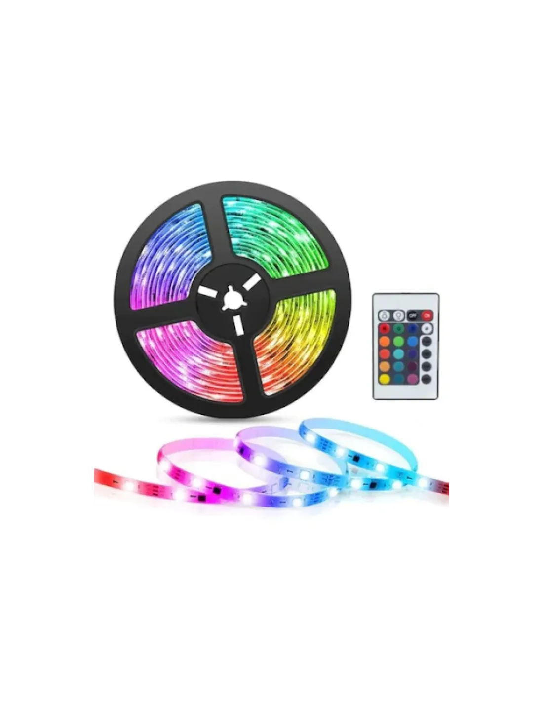 Banda LED 12 V cu controler si telecomanda wireless, utila pentru efectele sale speciale in iluminarea spatiilor interioare, dar si acvarii, pentru cei pasionati de tuning auto sau la realizarea de firme si casete luminoase. Cele 300 de led-uri multicolore asigura o lumina puternica, cu consum energetic redus si durata de viata mare (50.000 de ore).