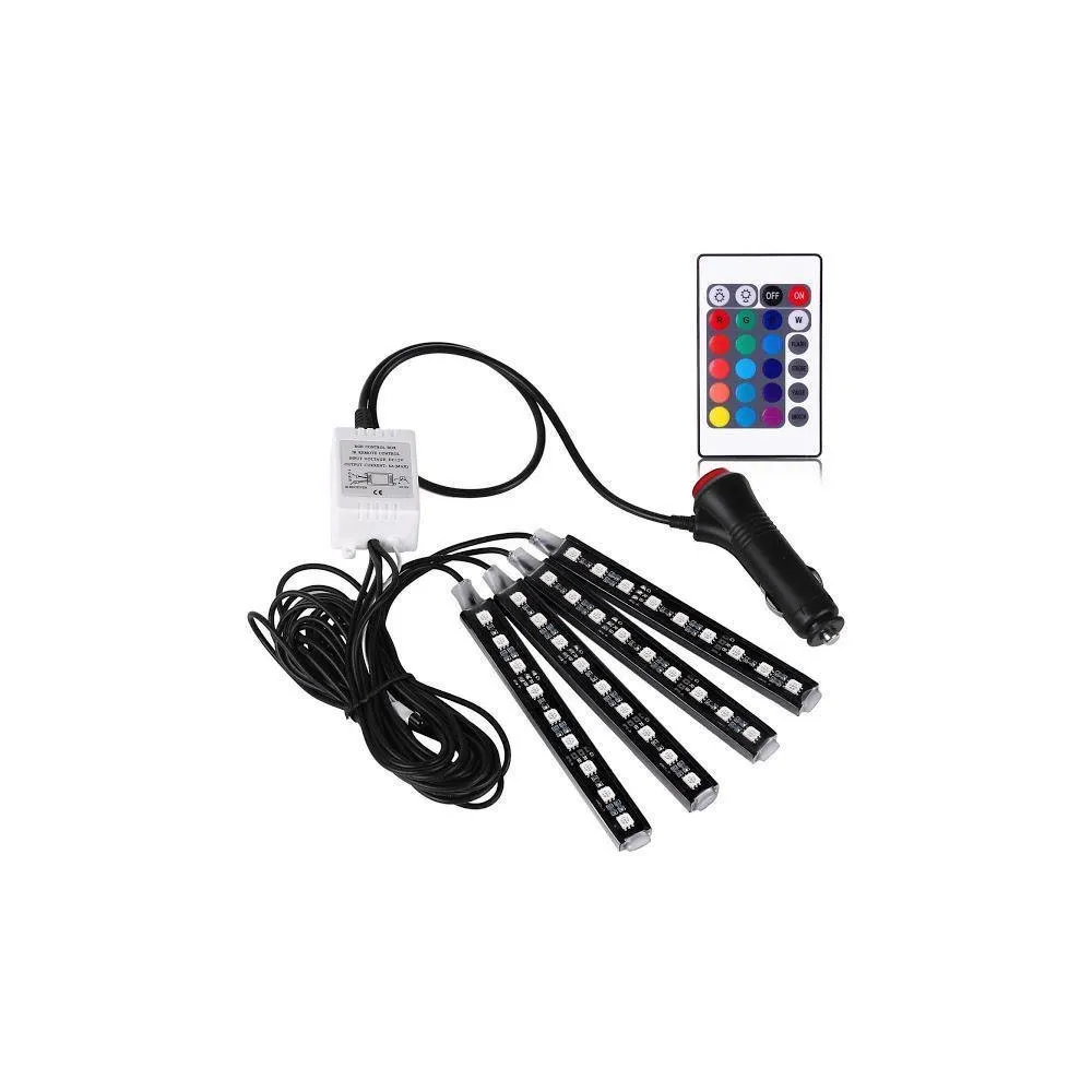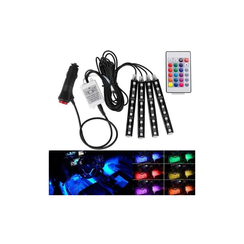 Set 4 benzi 9 LED ambientale pentru auto cu telecomanda