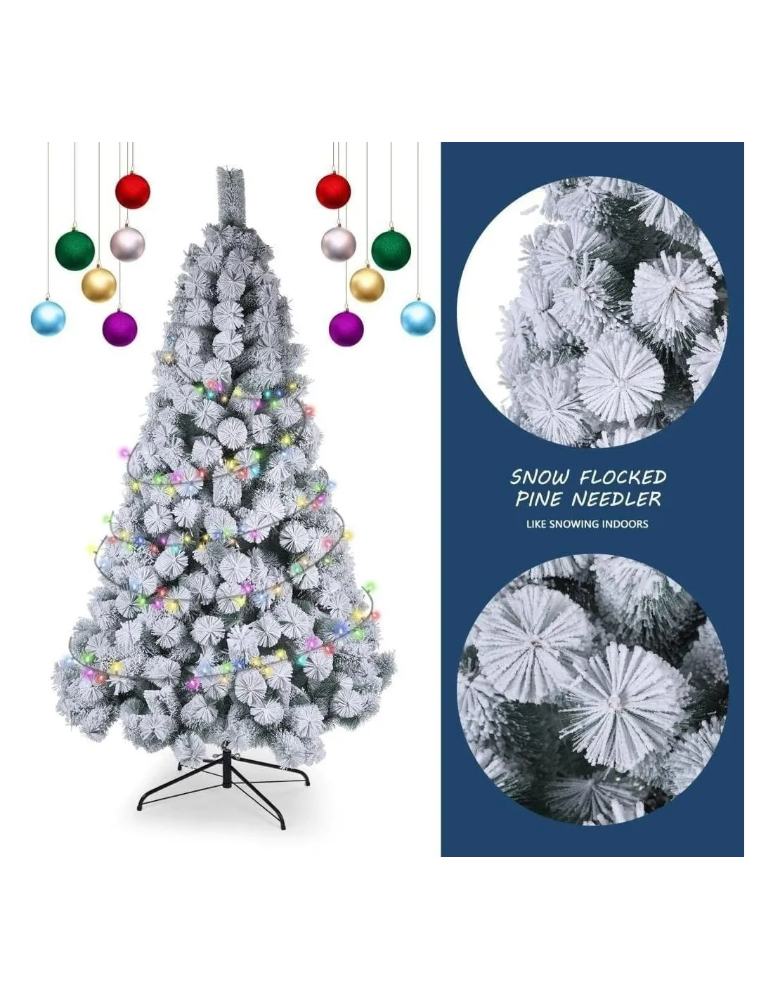 - Frunze pline de zapada infloritoare si pufoase: Designul plin de zapada pe frunze verzi ofera acasa o scena de zapada excelenta si o atmosfera puternica de festival. Cu 2 forme de frunze de varfuri din PVC si ace de pin, acest pom de Craciun realist prezinta o gradatie naturala pe un aspect luxuriant.