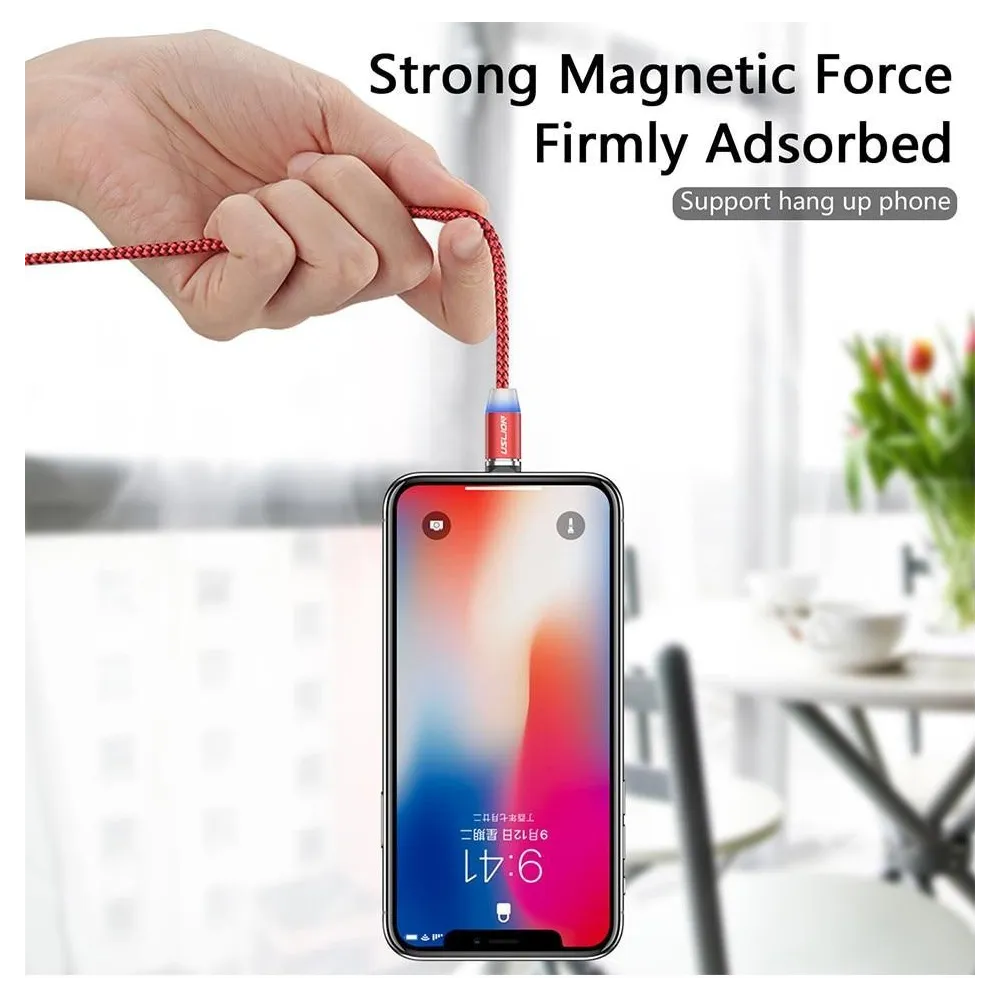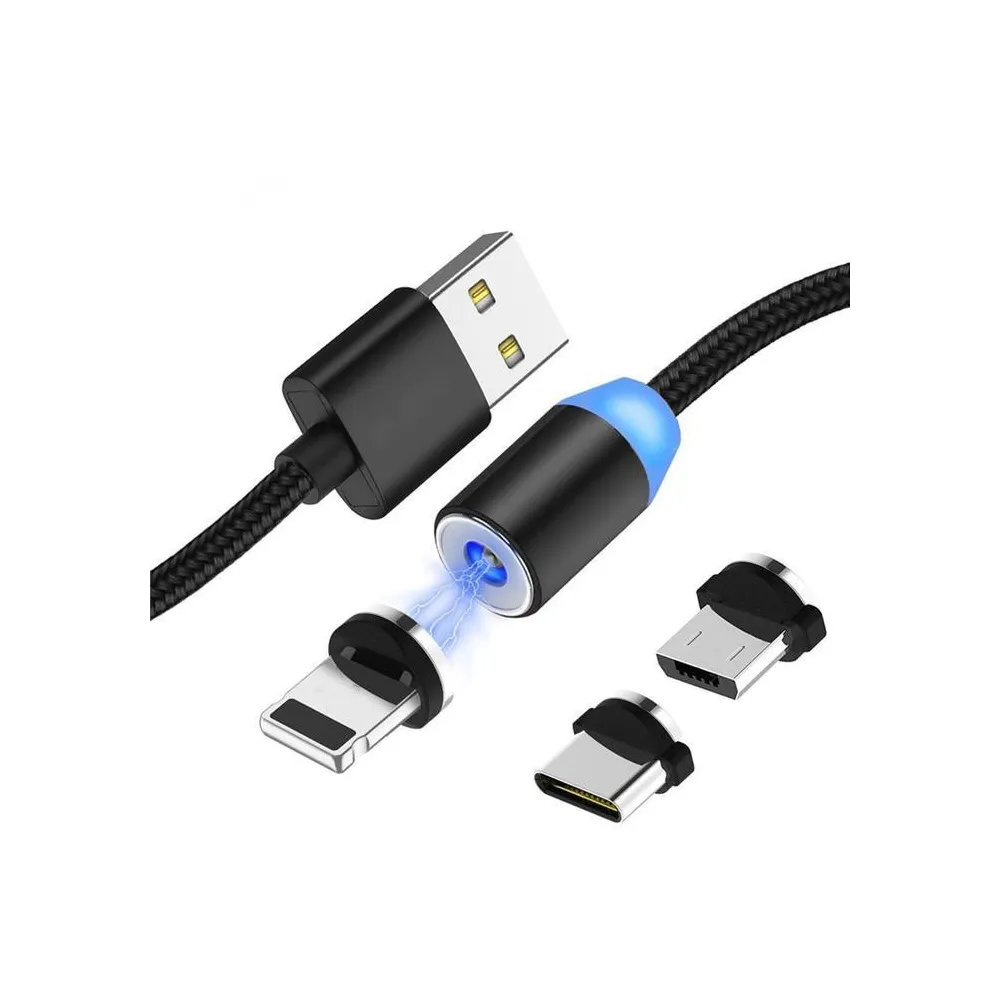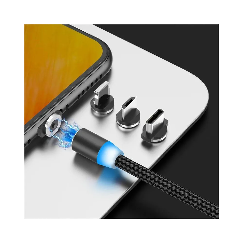 Cablu de incarcare si trasmitere date, magnetic cu led indicator. Cablul de incarcare cu indicator led este un cablu special ce poate fi folosit pentru incarcarea oricarui gadget - telefon, tableta, ipod, ipad etc. El are o mufa USB clasica la un capat si o mufa magnetica cu indicator led, la celalalt capat. De aceasta din urma se pot prinde in mod magnetic mufele propriu-zise - mufa de tip C, mufa mini USB, sau mufa Iphone.