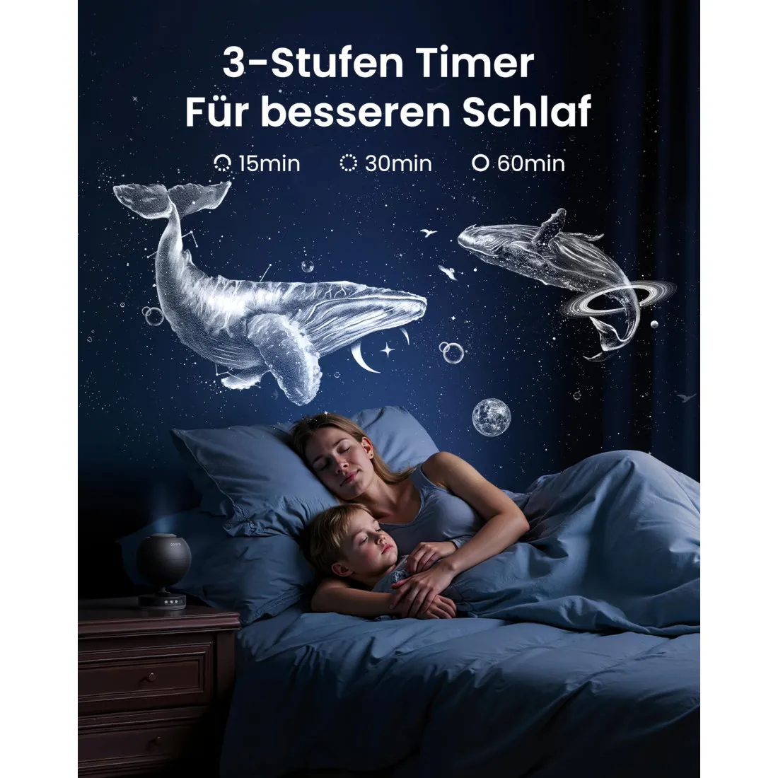 - Proiecție dinamică cu două moduri de vizualizare — Selectează între discurile de proiecție pentru a personaliza spectacolul cosmic și a se potrivi cu preferințele și starea de spirit a momentului.