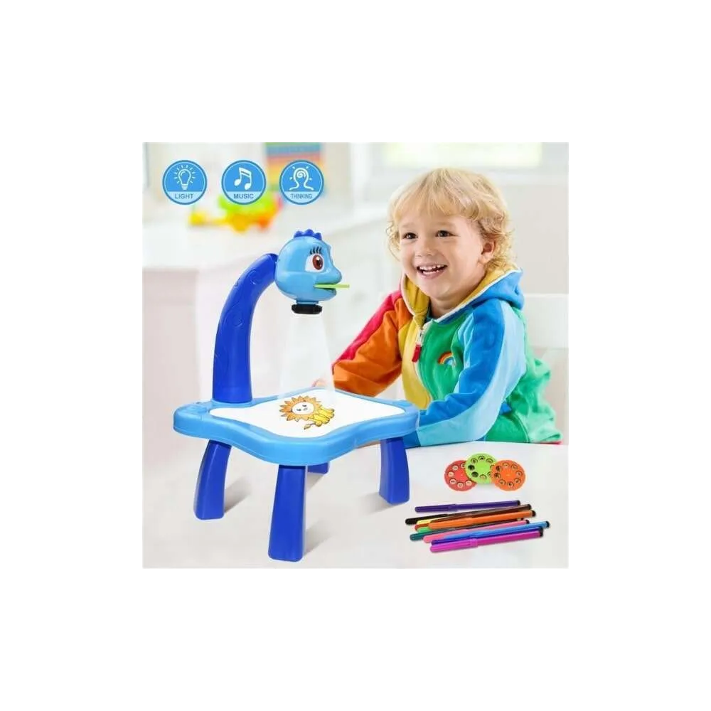 Proiector cu masuta pentru desenat dupa tipare specifice, proiectate pe masuta, incurajeaza creativitatea.