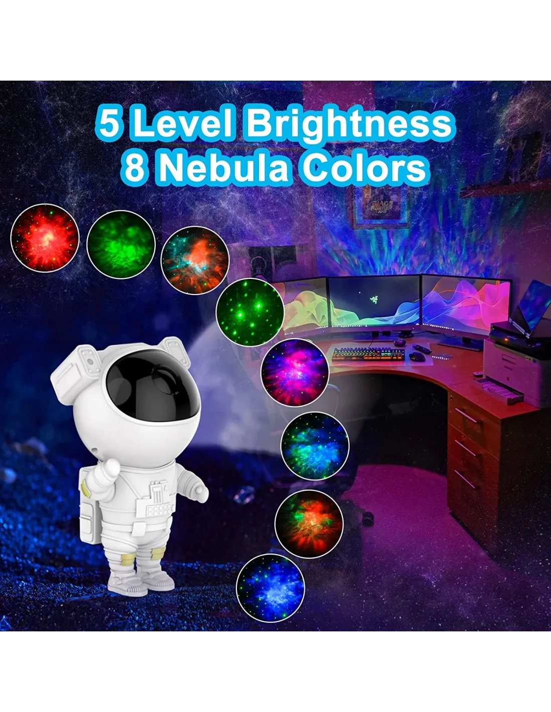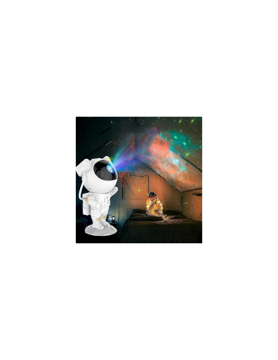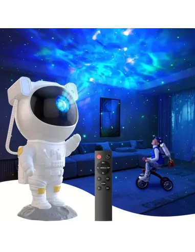 Astronautul este un proiector de lumina ambientala de tip nebula si stele, fiind in acelasi timp o extraordinara lampa de veghe pe timpul noptii si un obiect decorativ tematic de exceptie pe timpul zilei.