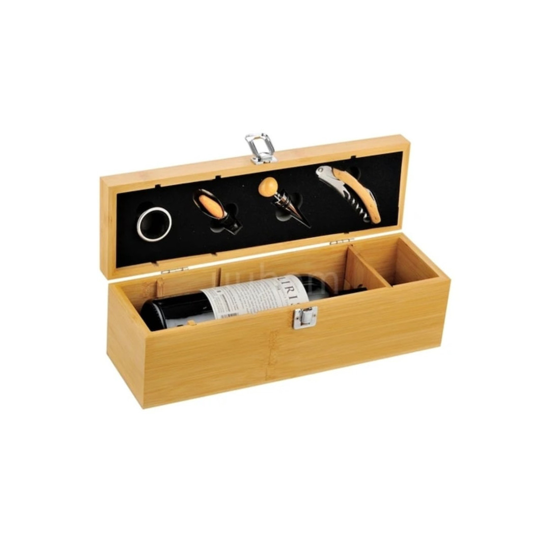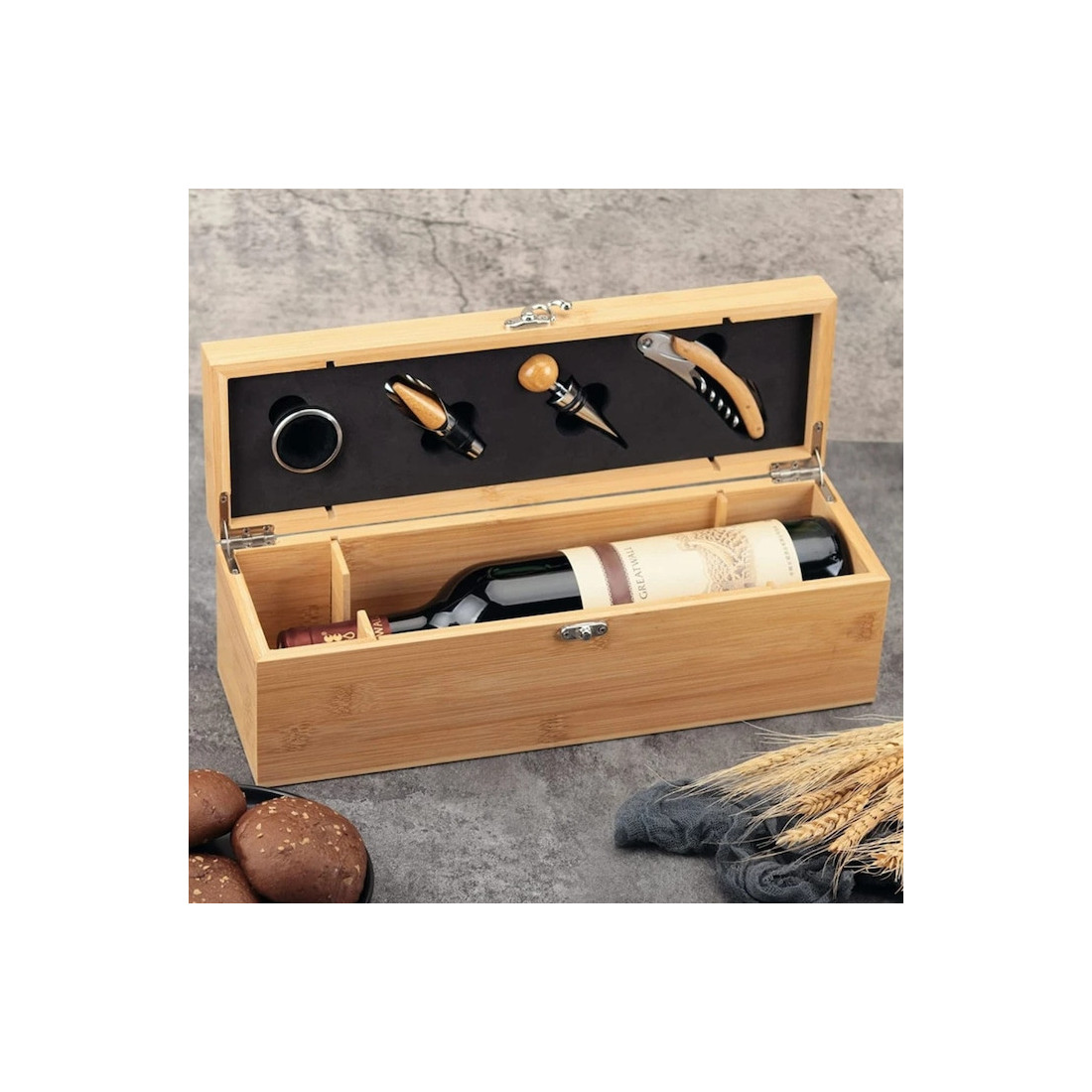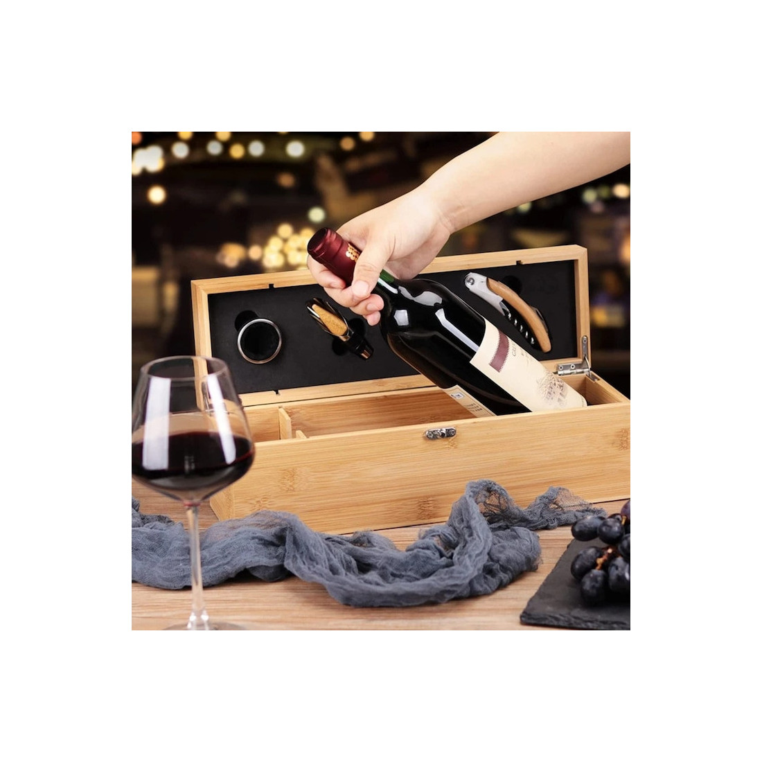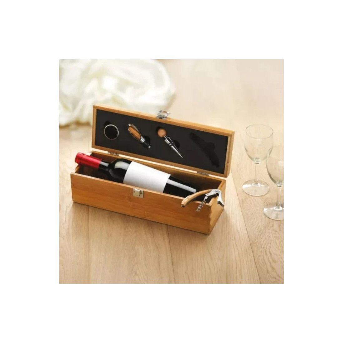 Cutia compactă din lemn cu finisaj elegant adaugă o notă de clasă oricărei ocazii – de la aniversări, sărbători sau petreceri la seri relaxante în familie. Prezentarea impecabilă face din acest set un cadou apreciat de cunoscători și iubitorii de vin.