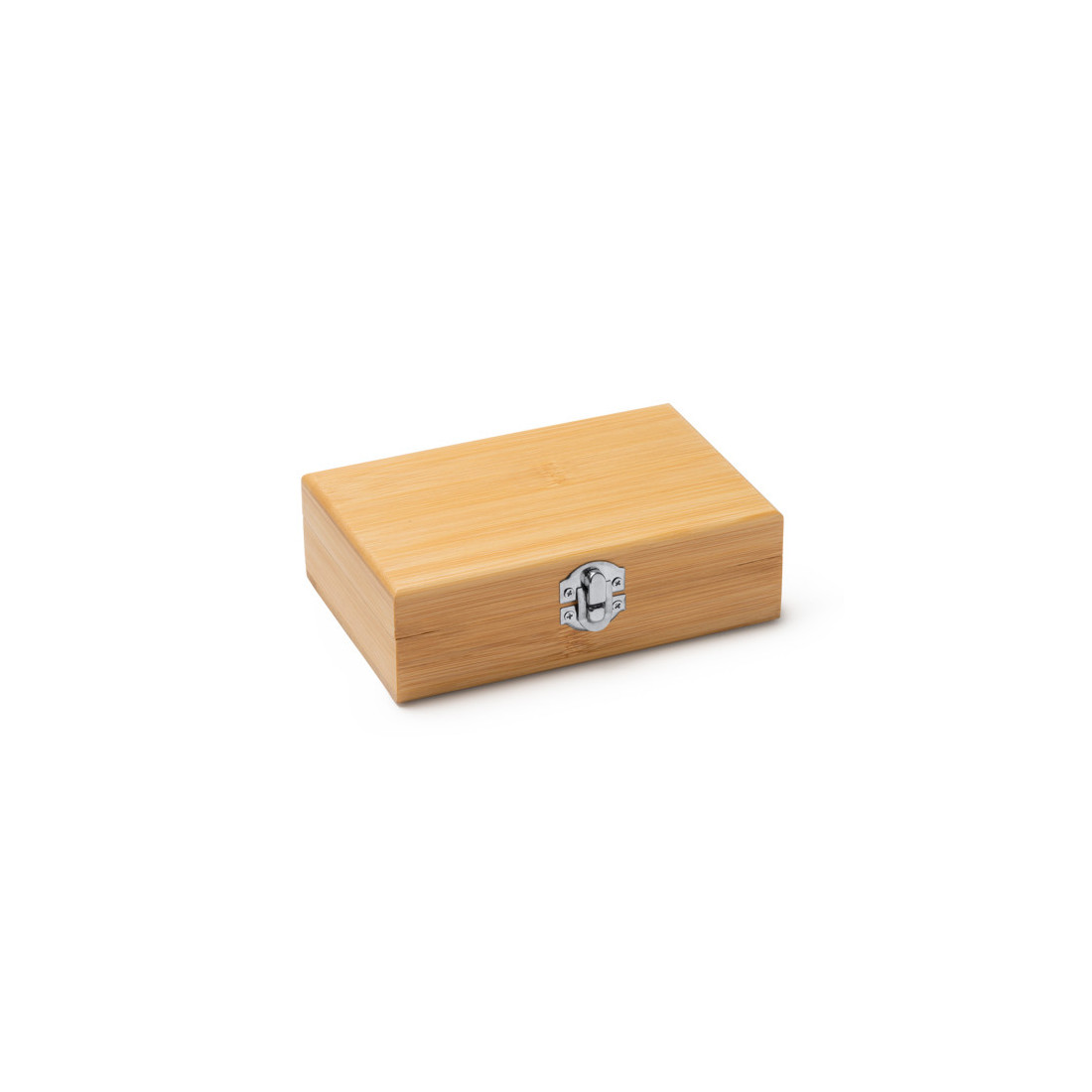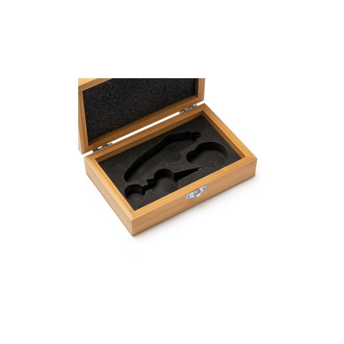 Accesoriile sunt prezentate într-o cutie elegantă din bambus, cu interior căp tușit, care protejează fiecare piesă și oferă produsului un aspect premium – perfect atât pentru uz personal, cât și pentru cadouri.