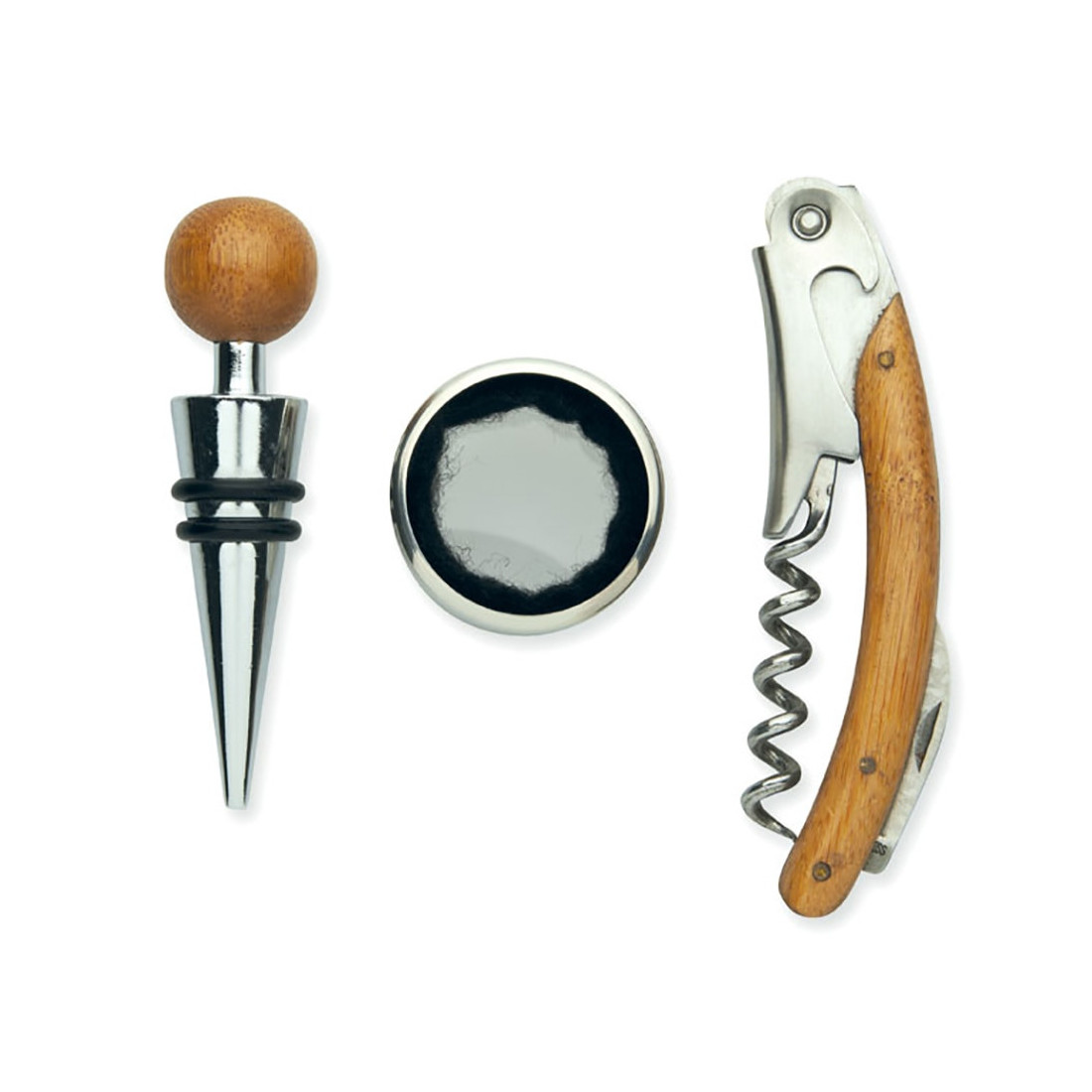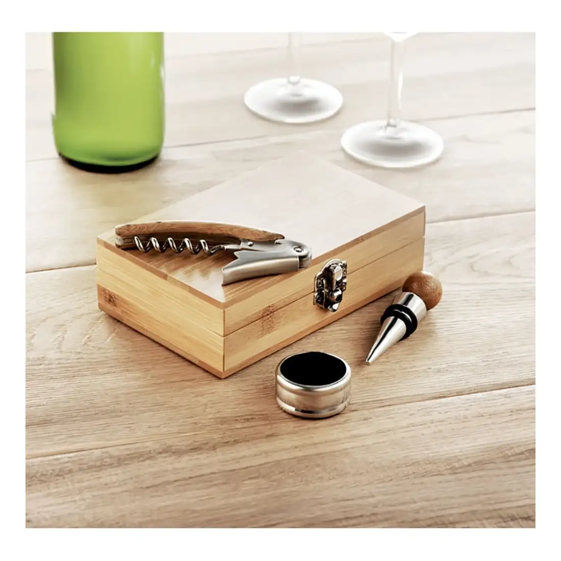 Set pentru vin elegant cu accesorii din oțel inoxidabil și bambus (AB4129)