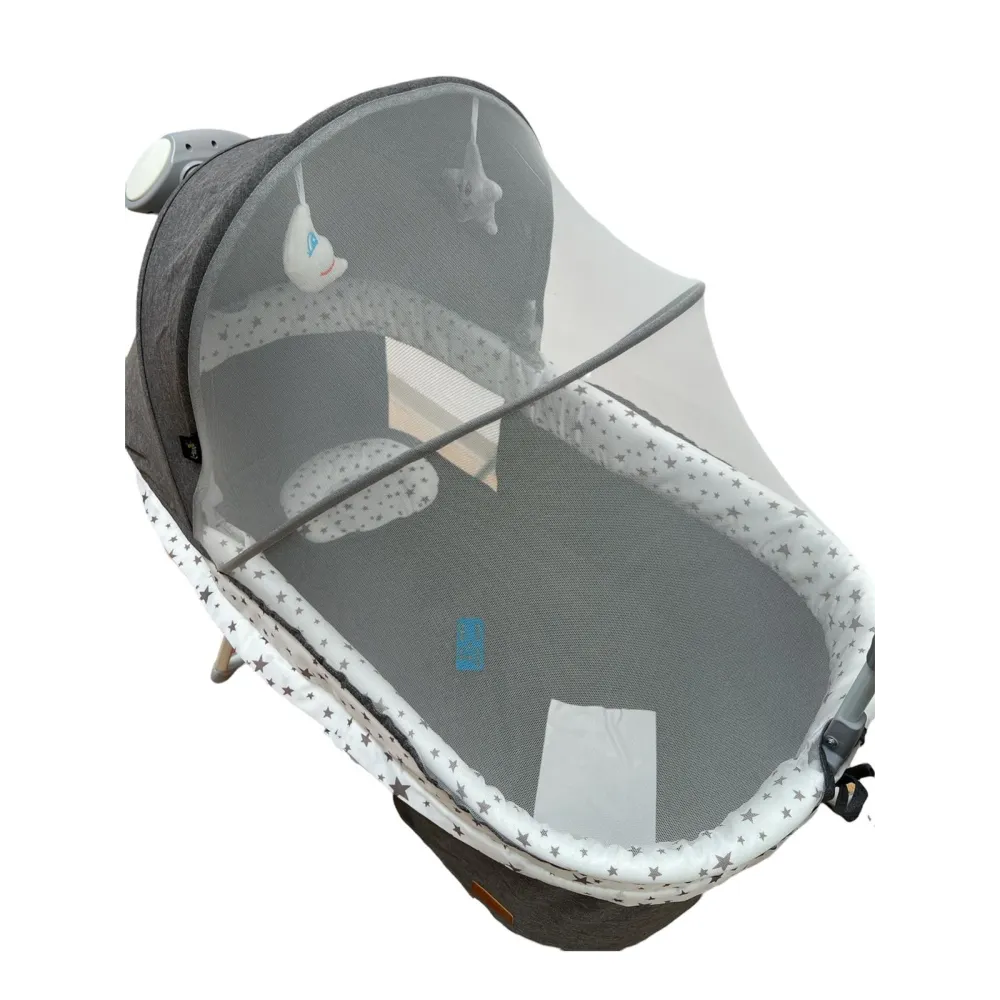 Produsul multifunctional poate fi utilizat atat ca leagan, cat si ca mini cos de dormit cu baldachin care il va proteja pe cel mic.