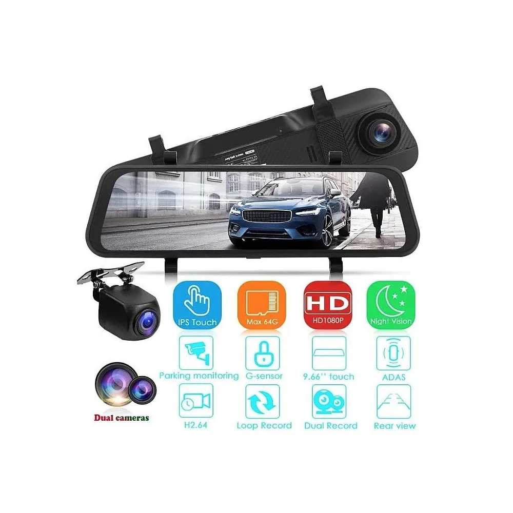 Oglinda auto cu camera fata spate 9.66 inch si cablu full display