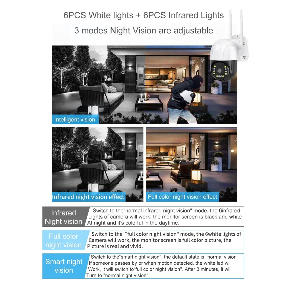 - Vizibilitate nocturnă: Echipată cu 12 LED-uri IR pentru imagini clare chiar și pe întuneric.
