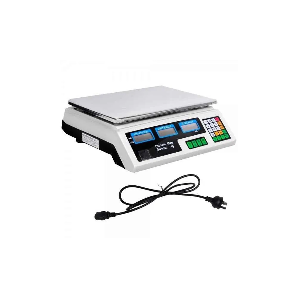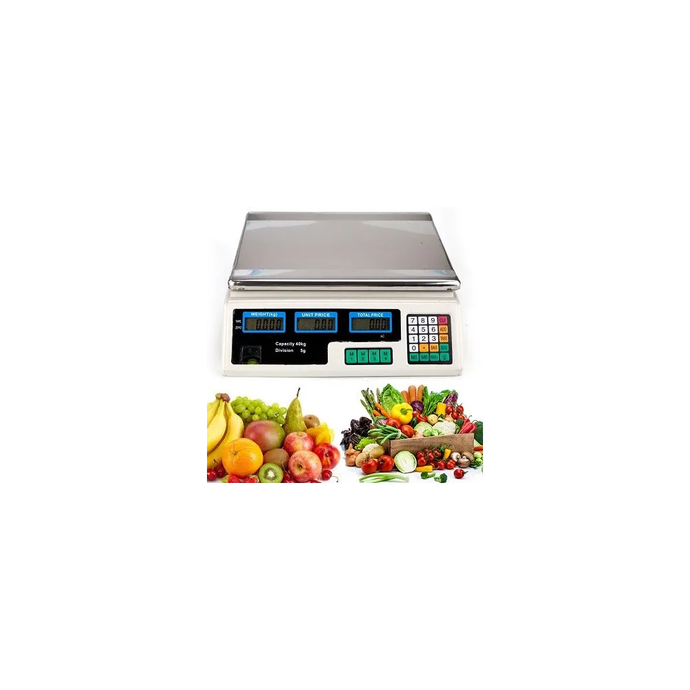Cantar electronic dispune de functia de calculare a pretului in functie de greutatea produsului si are o capacitate maxima de cantarire de 40 kg. Cantarul electronic are afisaj dublu: atat pentru vanzator cat si pentru client.