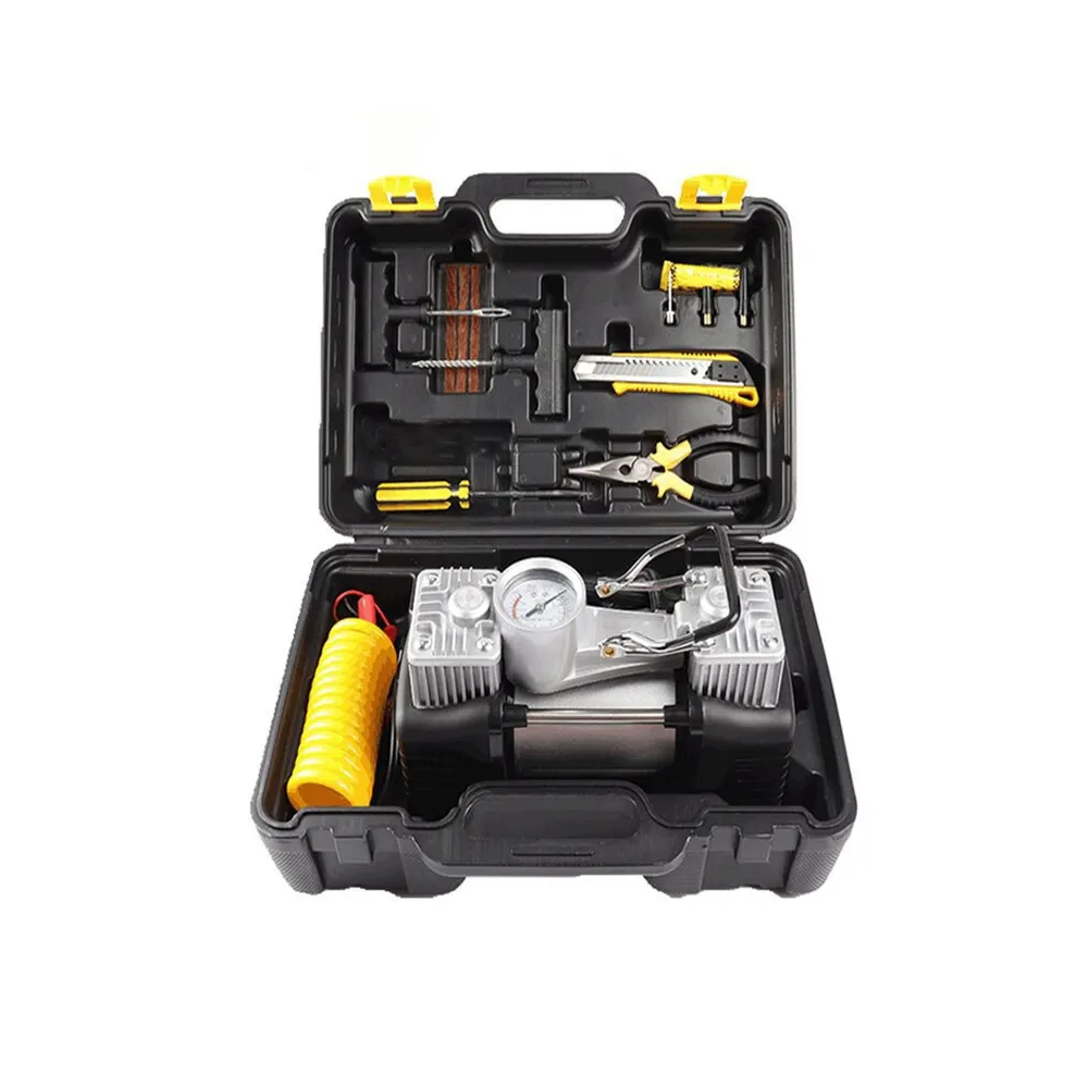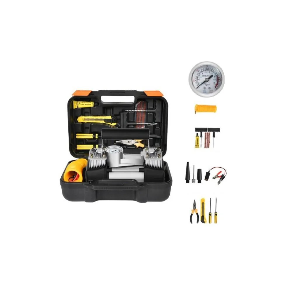 Compresor auto 12V cu 2 cilindrii, trusa si 7 accesorii