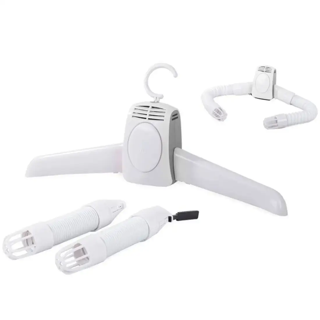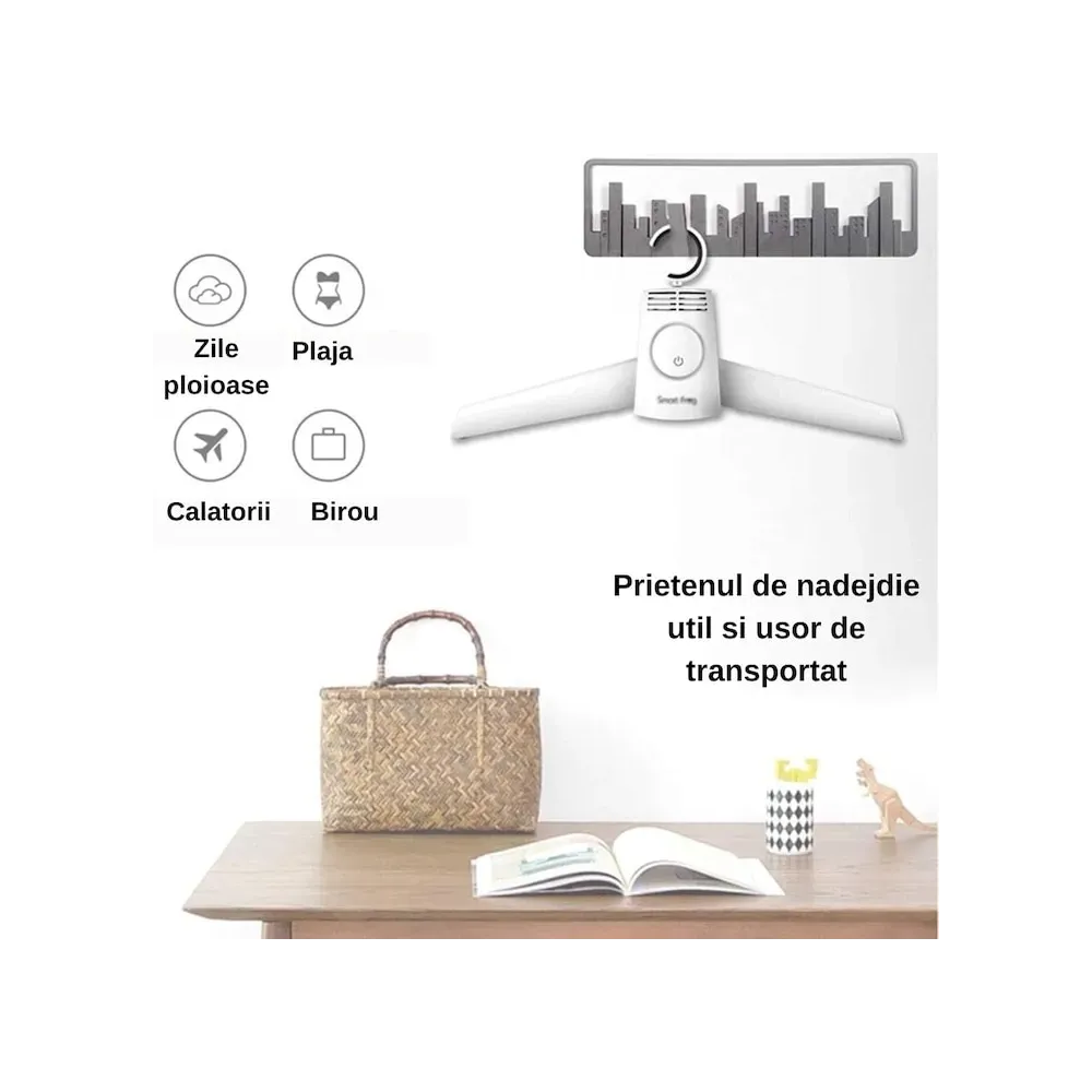 Umerașul electric portabil este soluția ideală pentru uscat, igienizat și dezinfectat rapid haine, rufe și chiar încălțăminte. Compact și ușor, poate fi utilizat în interior, fiind perfect pentru spații mici sau în călătorii. Fabricat din ABS rezistent, umerașul are funcții ergonomice, ajustabile și retractabile, cu buton ON/OFF pentru o utilizare simplă. Capacitatea de uscare de până la 110 cm și dimensiunile reduse pentru depozitare (29 x 22 x 10 cm) îl fac practic și eficient.
