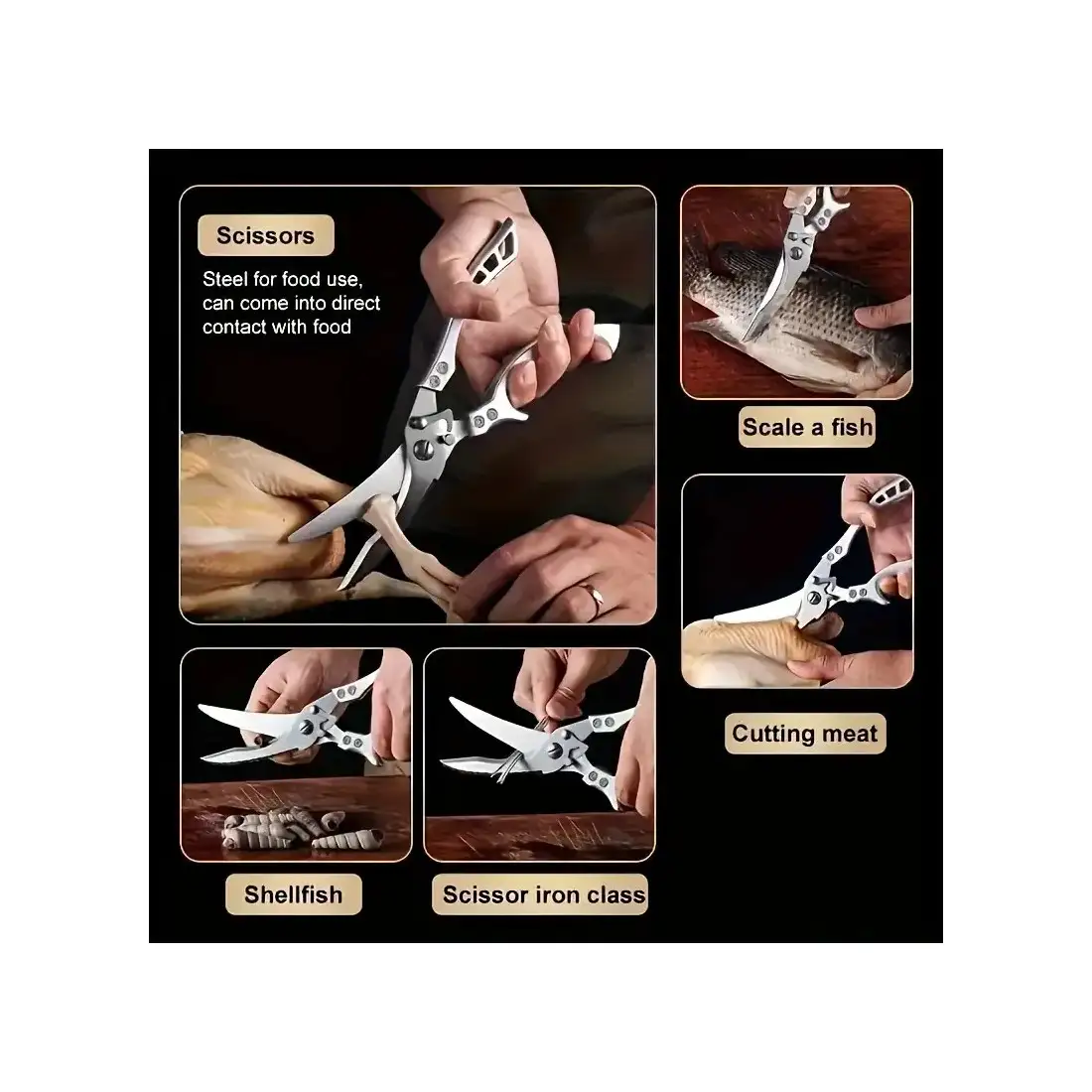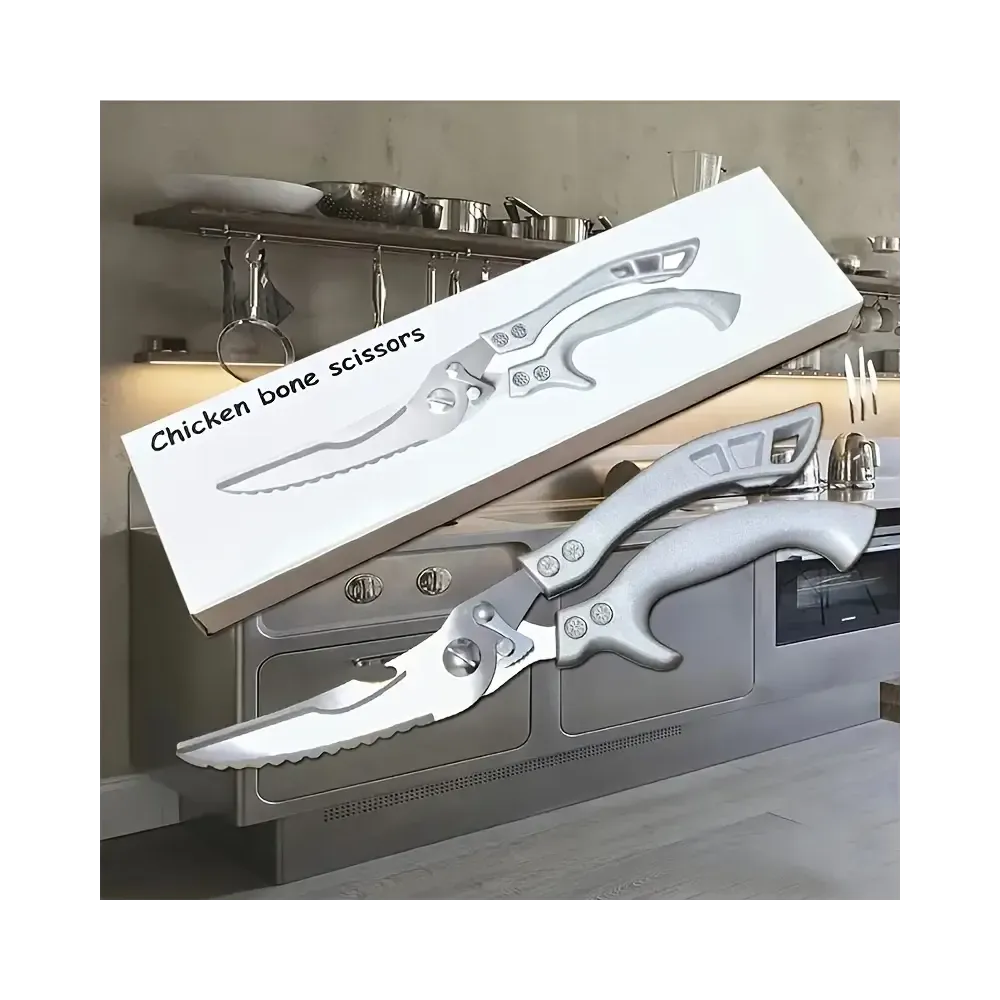 Foarfeca de bucatarie multifunctionala, otel inoxidabil,pentru oase de pui , 4.5 × 25 cm, Argintiu