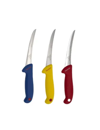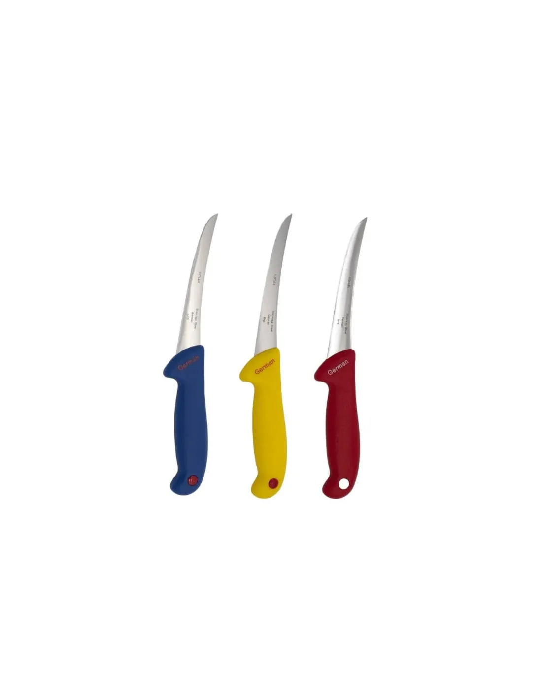 Cuțitele sunt unelte indispensabile în orice măcelărie sau bucătărie profesională. Acest set de 3 cuțite profesionale este conceput pentru a vă oferi performanță, durabilitate și precizie la fiecare utilizare. Cu lame fabricate din oțel german de calitate superioară și mânere ergonomice din plastic dur, acest set este ideal pentru a tranșa, dezosa și porționa cu ușurință orice tip de carne.