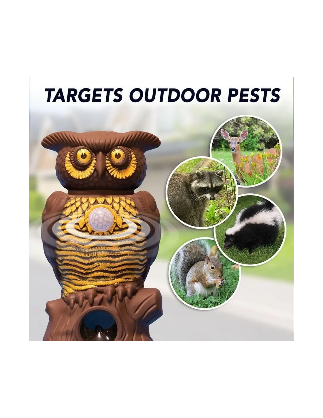 Fabricat dintr-un material rezistent pentru a se folosi in exterior, o perioda lunga de timp. Fabricat si proiectat dintr-un material care imita perfect Bufnita ! Poate fi folosit si ca element decorativ pentru orice loc. Secretul consta in combinatia dintre senzorul de miscare, care la activare face ca aparatul sa emita ultrasunete si ochii bufnitei care se aprind intr-o nuanta de rosu intens. Fara chimicale, pesticide si fara a fi daunatoare animalelor din gospodarie, Owl Alert este solutia ideala pentru indepartarea daunatorilor!