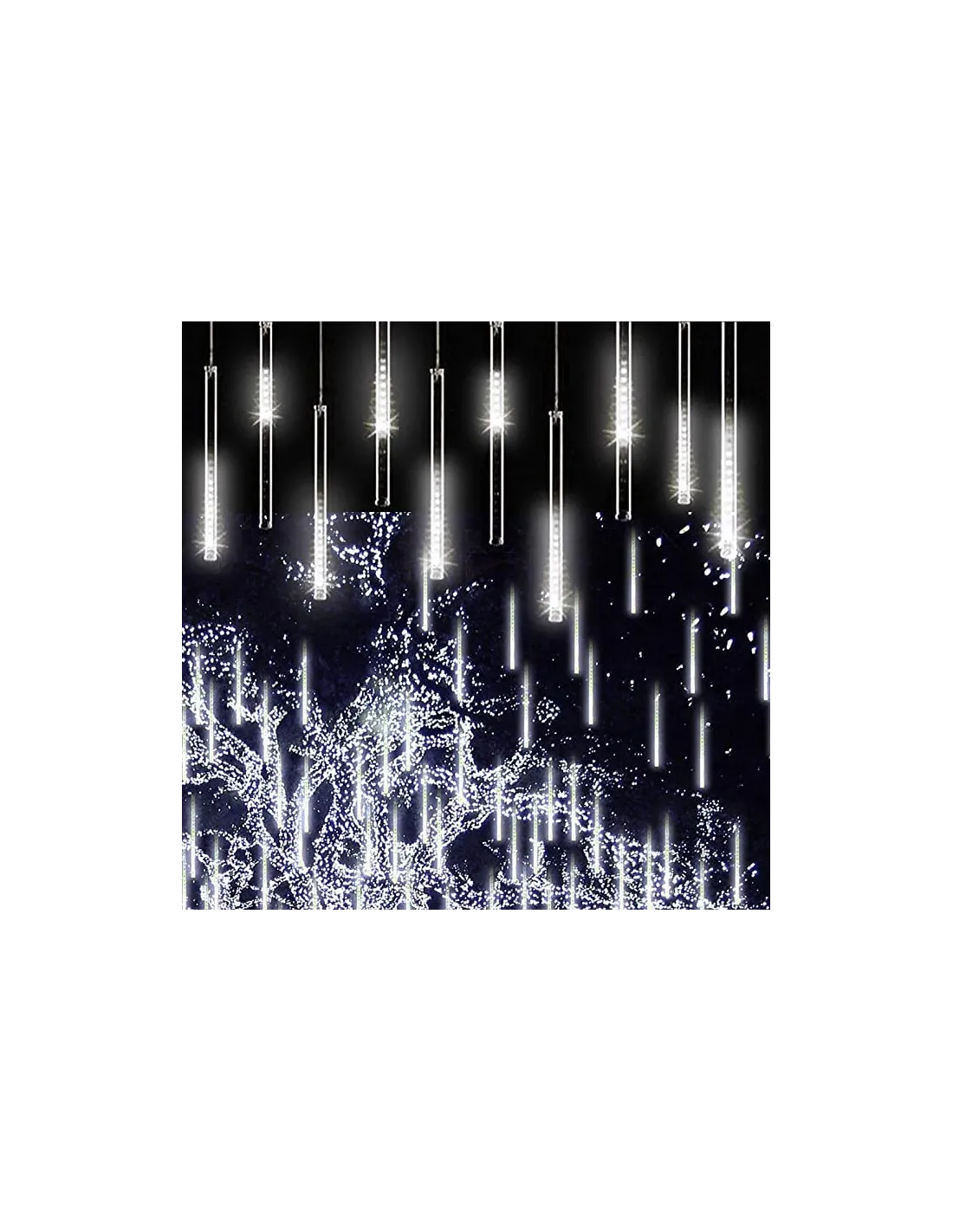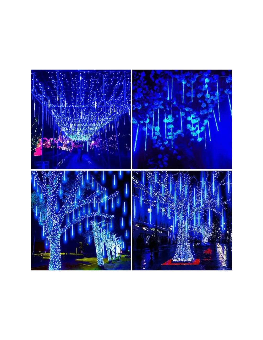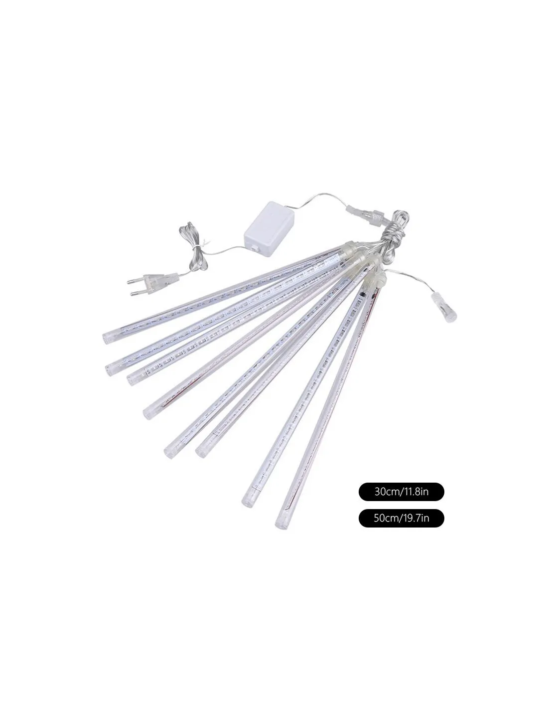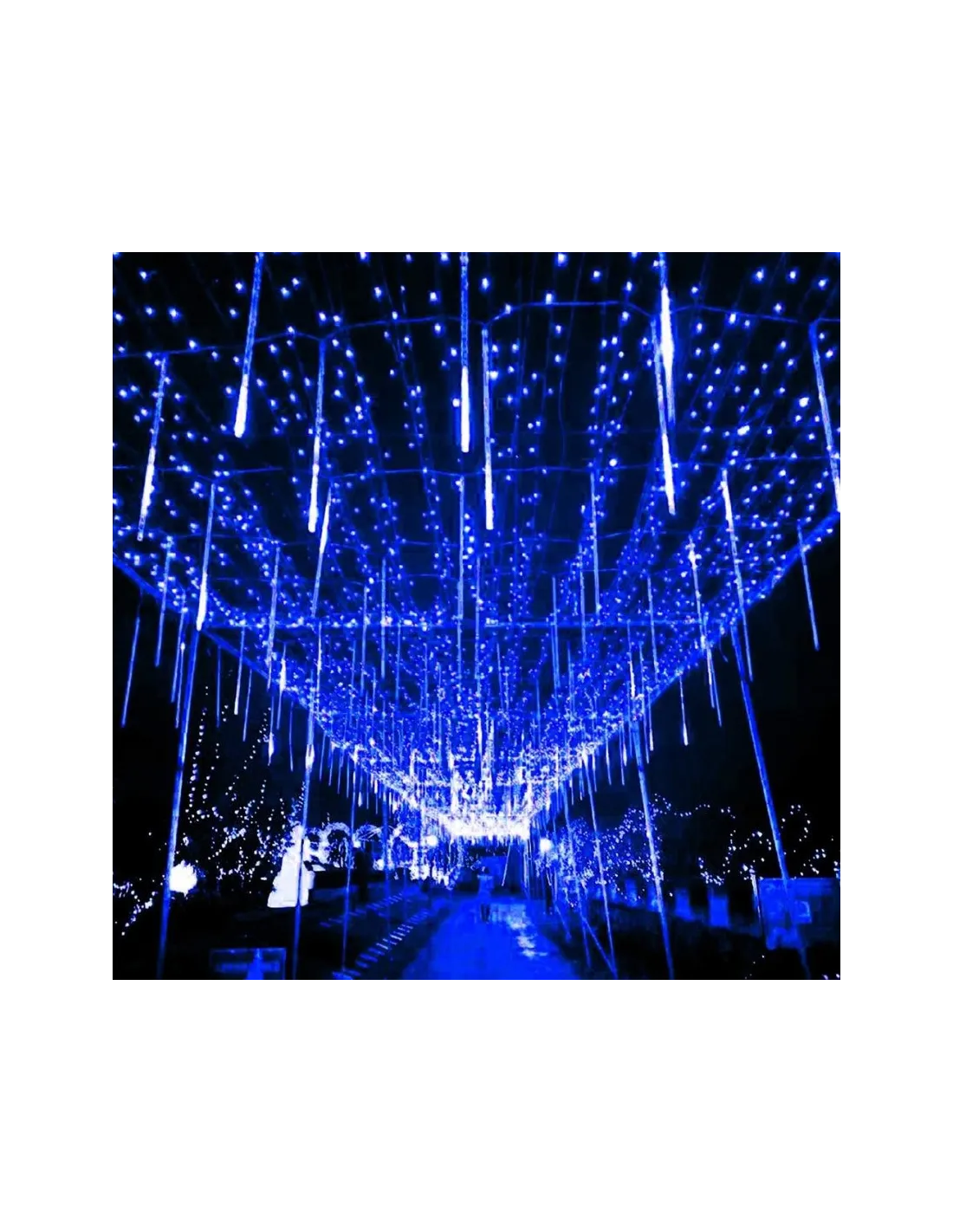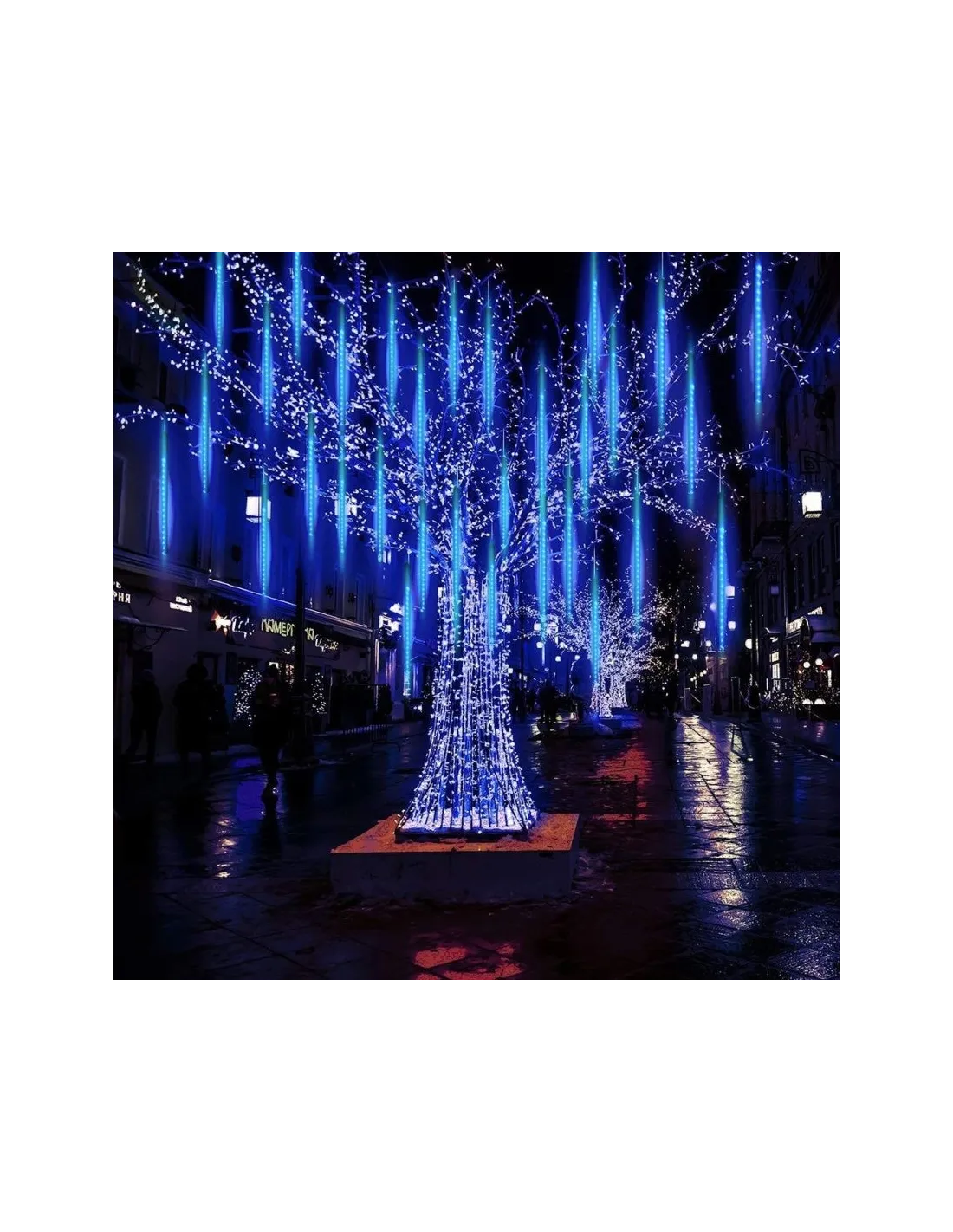 Instalație LED tip meteorit 30 cm, 8 tuburi luminoase, interconectabile, cu efect de ninsoare. Disponibilă în albastru, alb rece și multicolor. Perfectă pentru decor interior și exterior protejat, alimentare 220V.